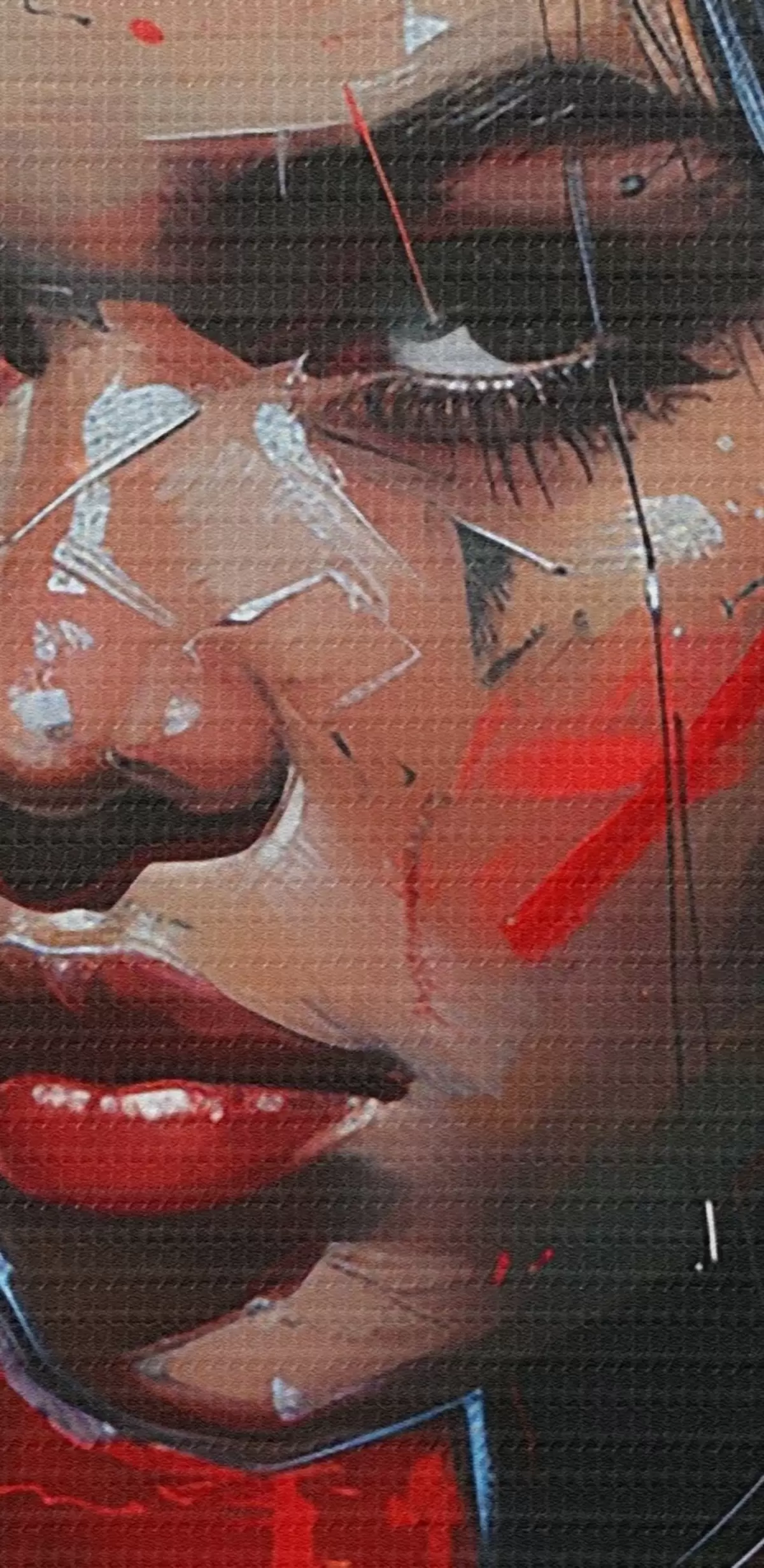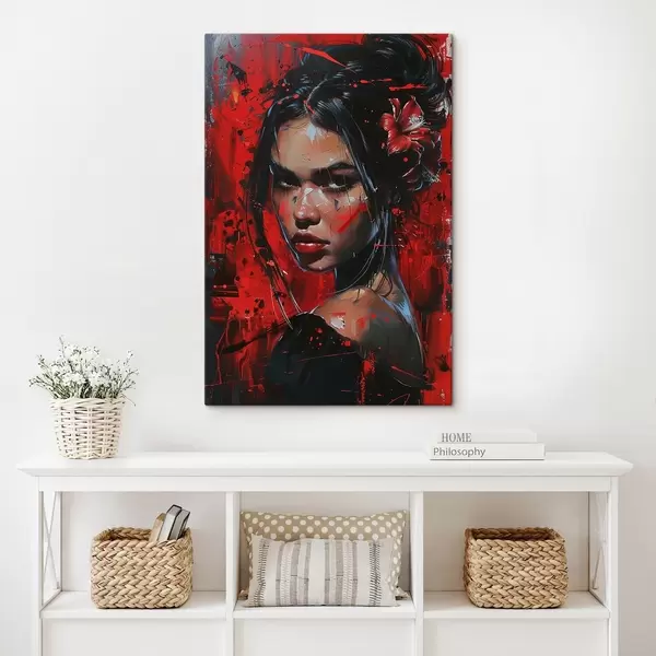 Cuadros Chica con pinturas sobre fondo rojo Nr s41413