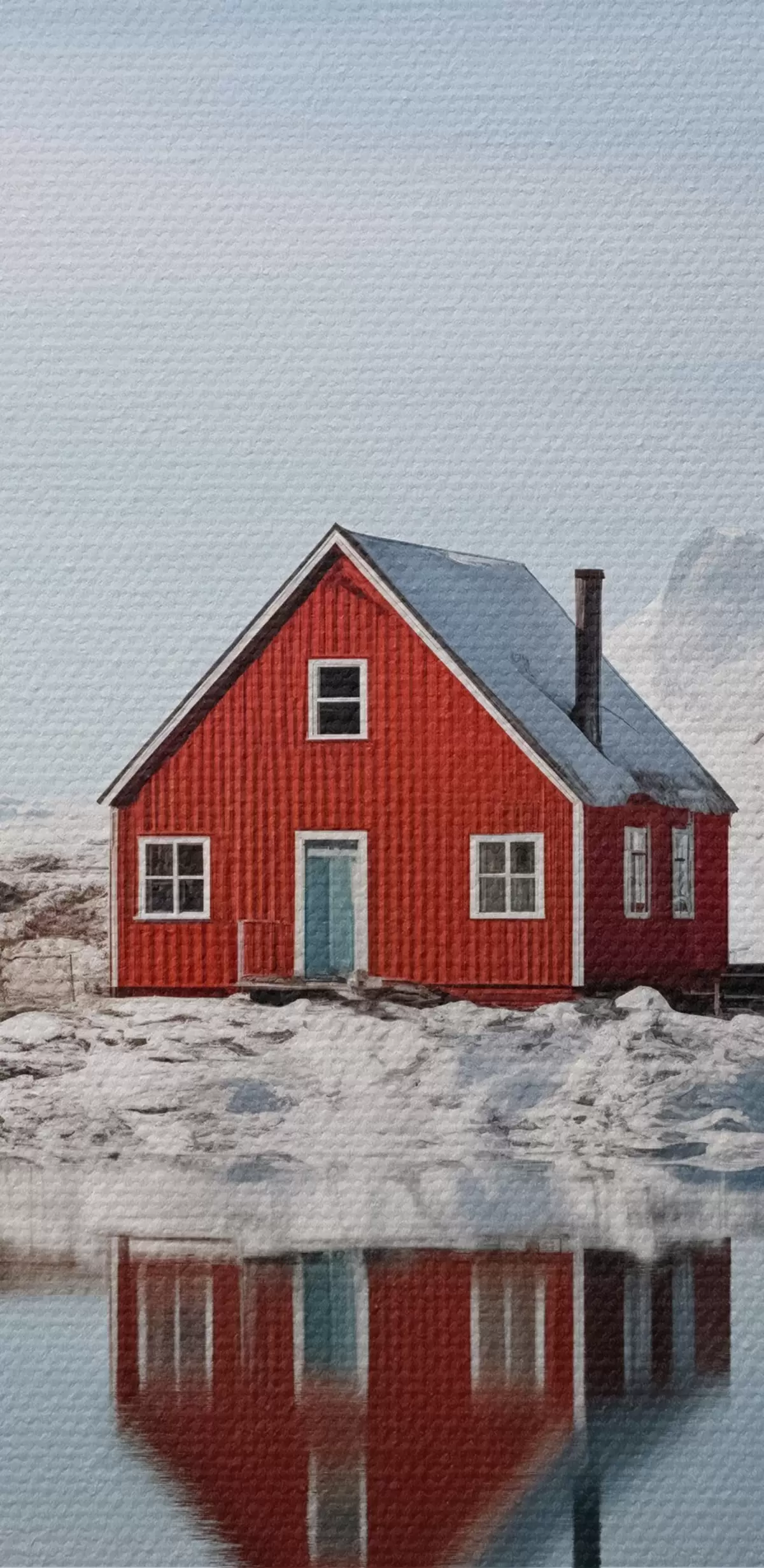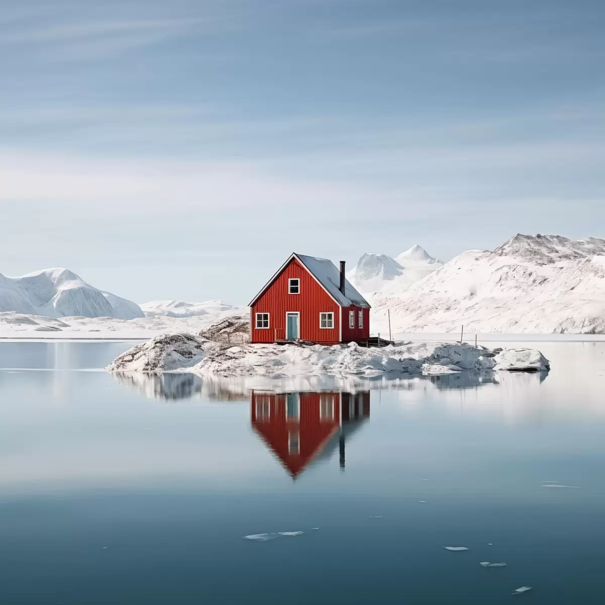 Cuadros Paisaje invernal minimalista casa roja junto al lago Nr s41437