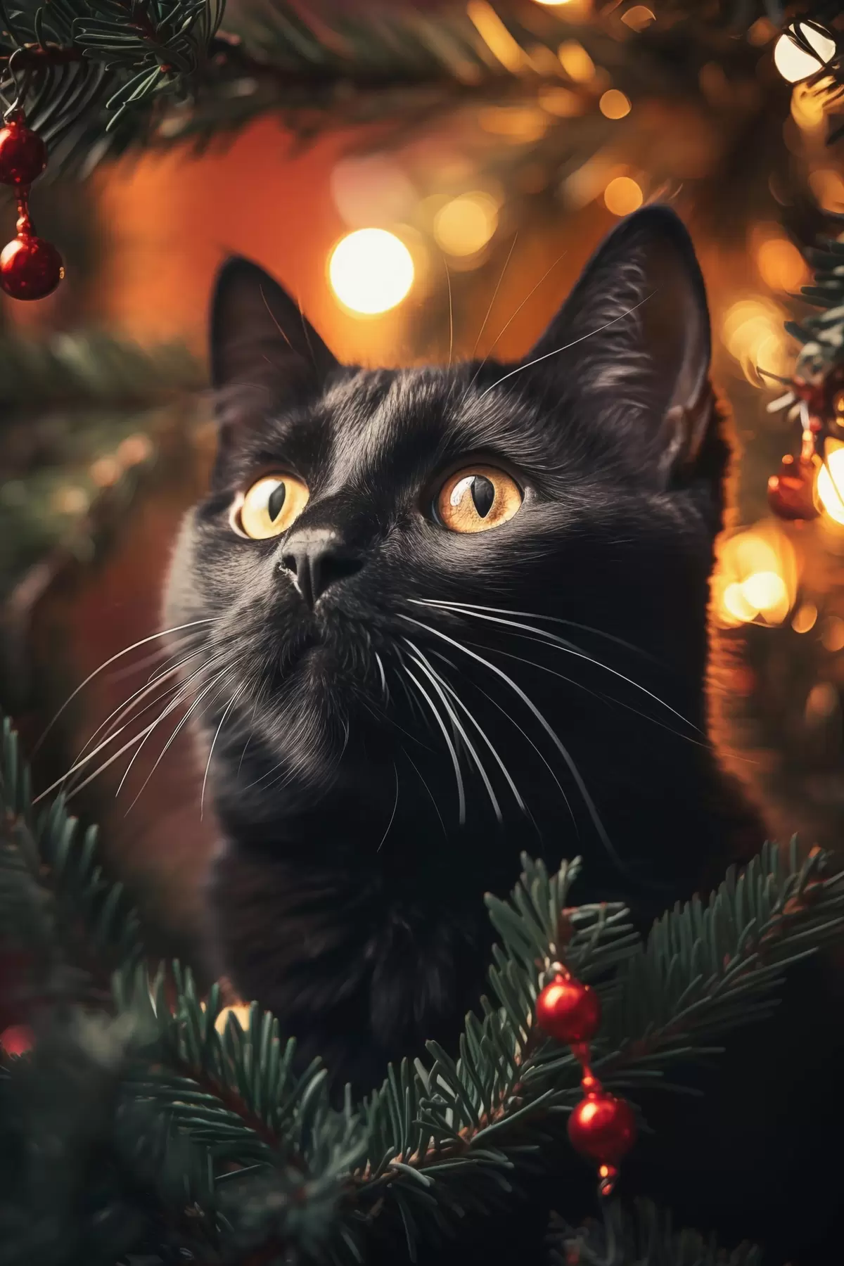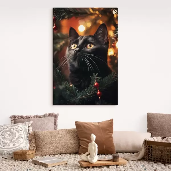 Cuadros Gato negro sobre el fondo de luces de Año Nuevo Nr s41441