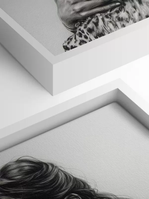 Cuadros Mujer con leopardo, animales salvajes, dibujo a lápiz, blanco y negro Nr s41455