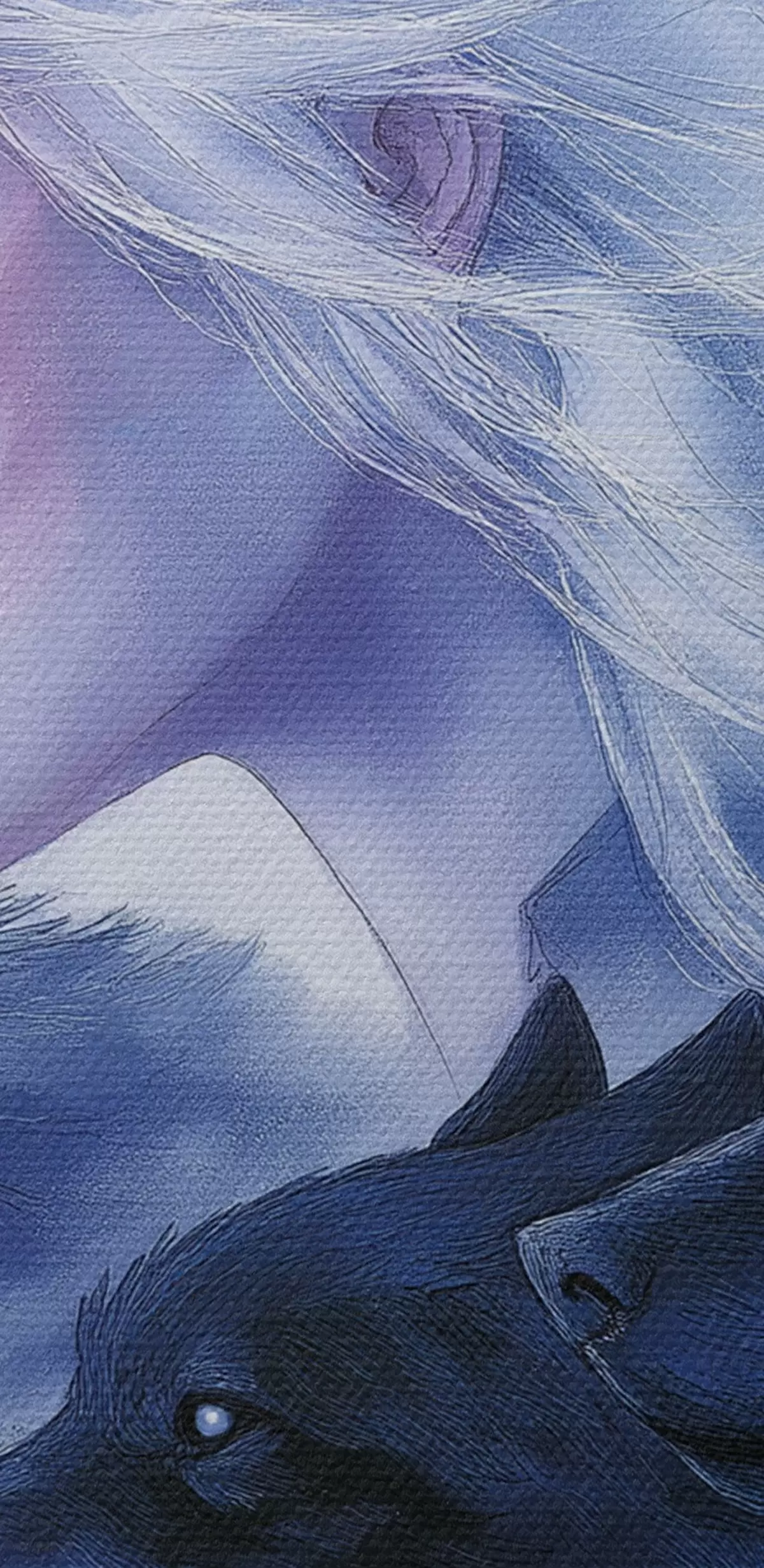 murales de pared Invierno, mujer con lobos, niebla, misterioso  s41460