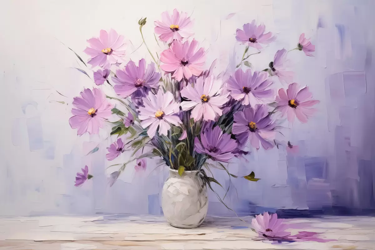 murales de pared Delicadas flores violeta púrpura en un jarrón s41475