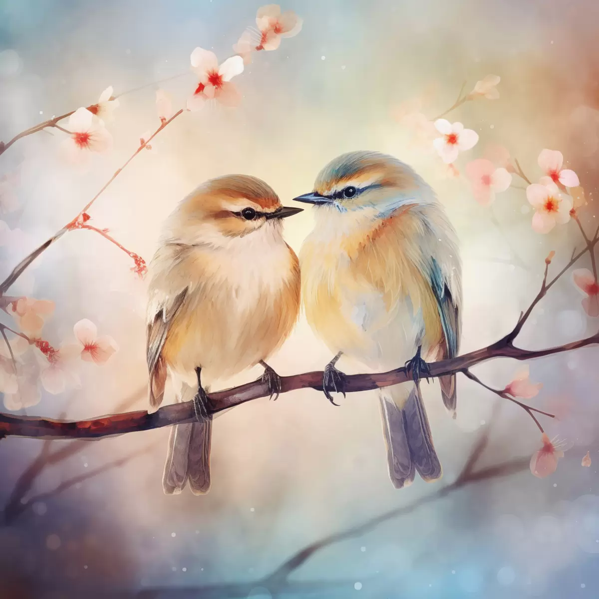 Cuadros Un par de pájaros están sentados en una rama florida Nr s41476