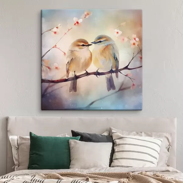 Cuadros Un par de pájaros están sentados en una rama florida Nr s41476