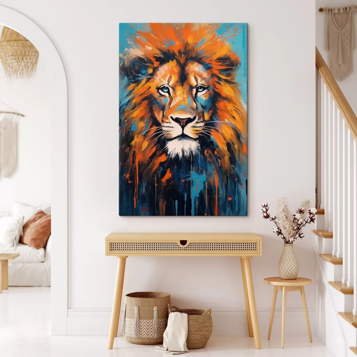Cuadros Brillante león abstracto en tonos azules ardientes Nr s41480
