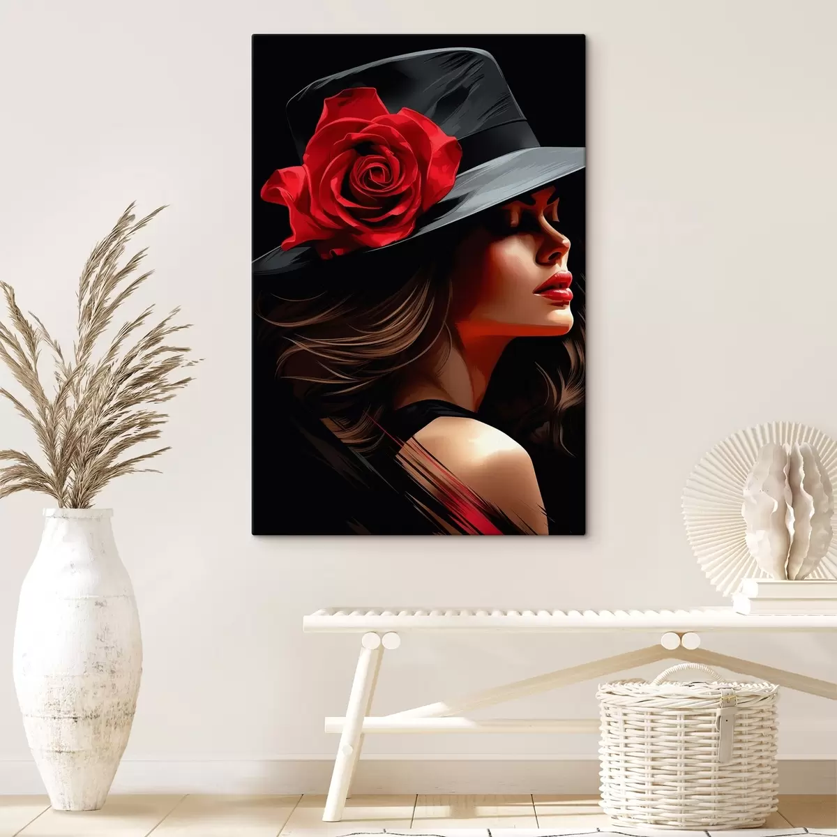 Cuadros Ilustración chica con sombrero con una hermosa rosa chic Nr s41546