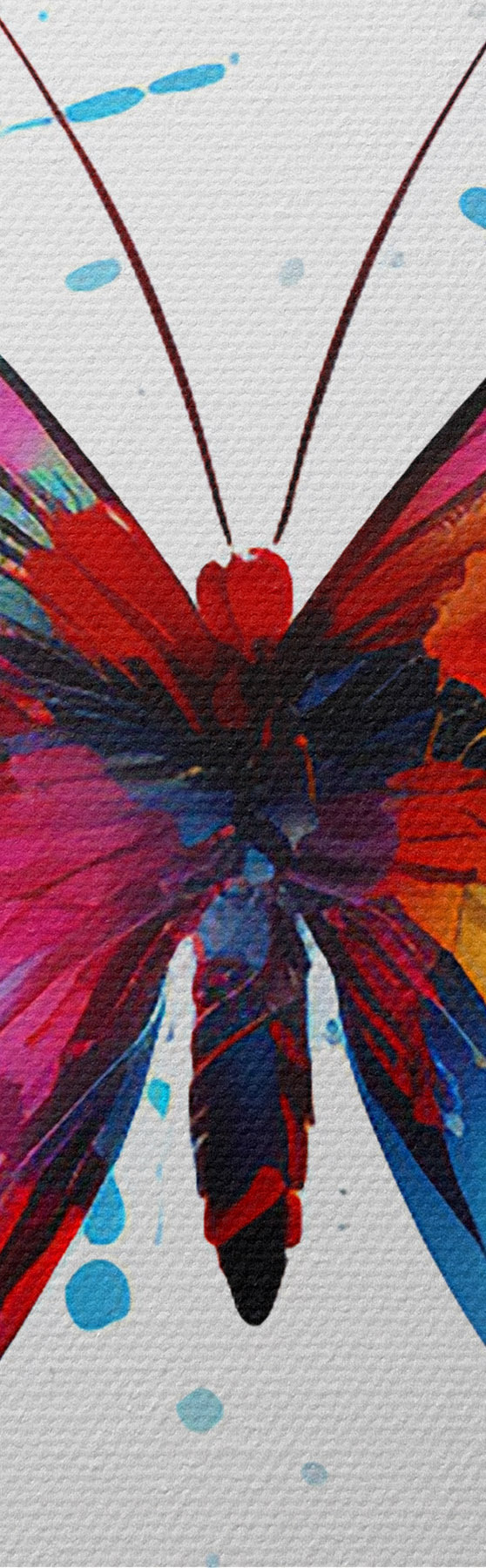 Cuadros Mariposa de acuarela sobre un fondo de salpicaduras de pintura multicolor Nr s41560