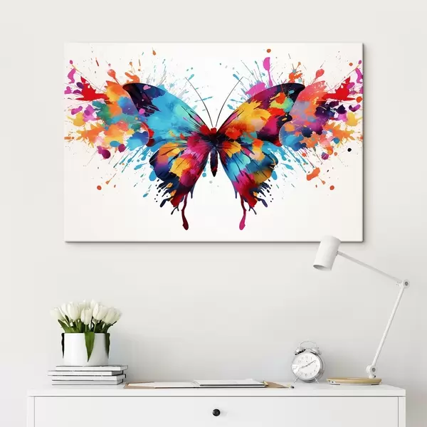 Cuadros Mariposa de acuarela sobre un fondo de salpicaduras de pintura multicolor Nr s41560