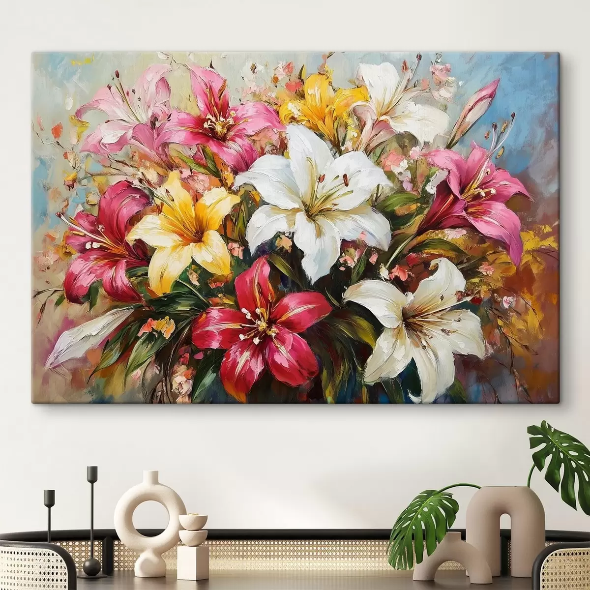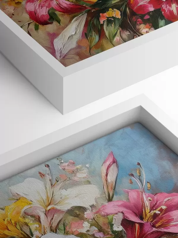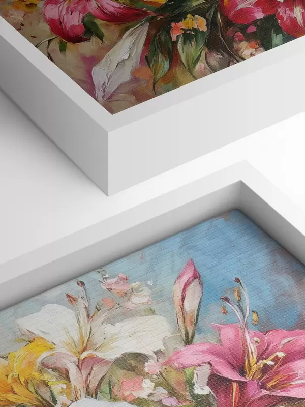 Hay tres tipos de material disponibles para pedidos: Lienzo Económico - material denso y duradero para impresión digital, idéntico al lienzo de pintor, superficie impermeable, reproducción realista de los detalles, material de grano medio. Lienzo Premium - la textura se asemeja a la de un lienzo de pintor (pequeños hilos entrelazados). Reproducción suave y detallada de la imagen sobre una superficie mate. Eco-Premium - tejido 100% algodón de alta calidad. Gracias a las fibras naturales de algodón, el material es duradero y resistente al desgaste. Excelente reproducción del color y el detalle.