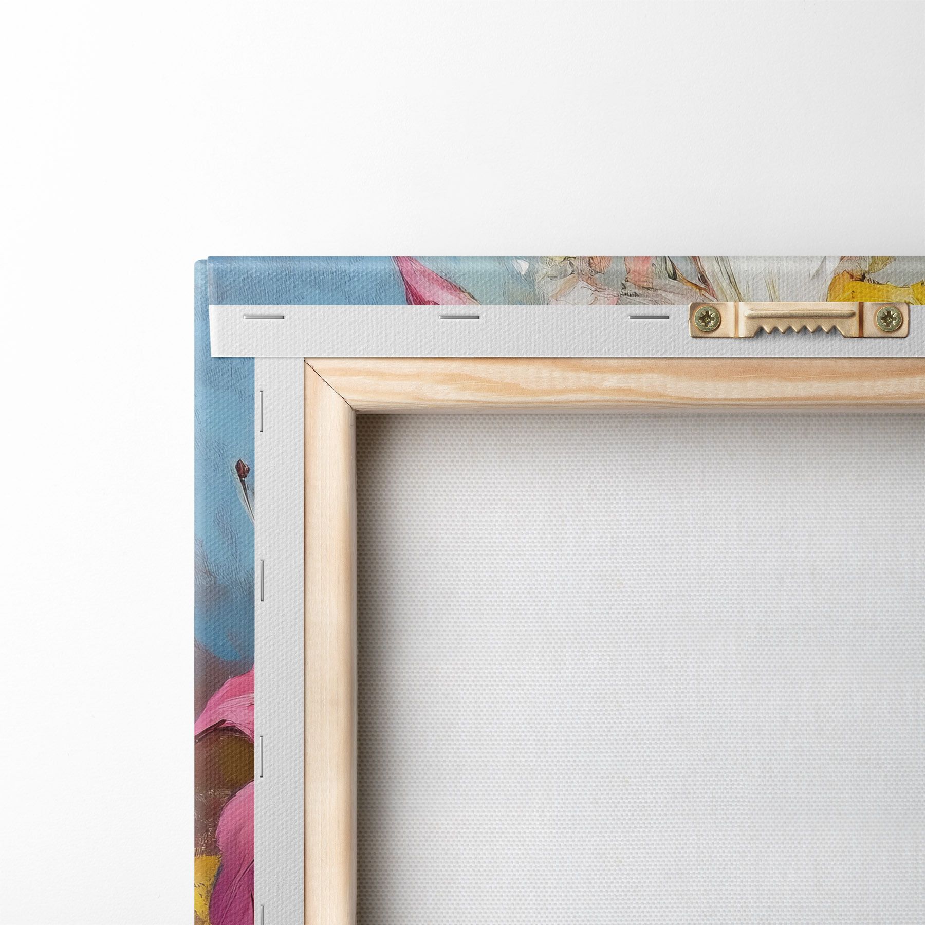 Vendemos cuadros en bastidor: se trata de un marco de madera sobre el que se extiende el lienzo. Este cuadro no necesita marco; puedes colgarlo directamente en la pared.