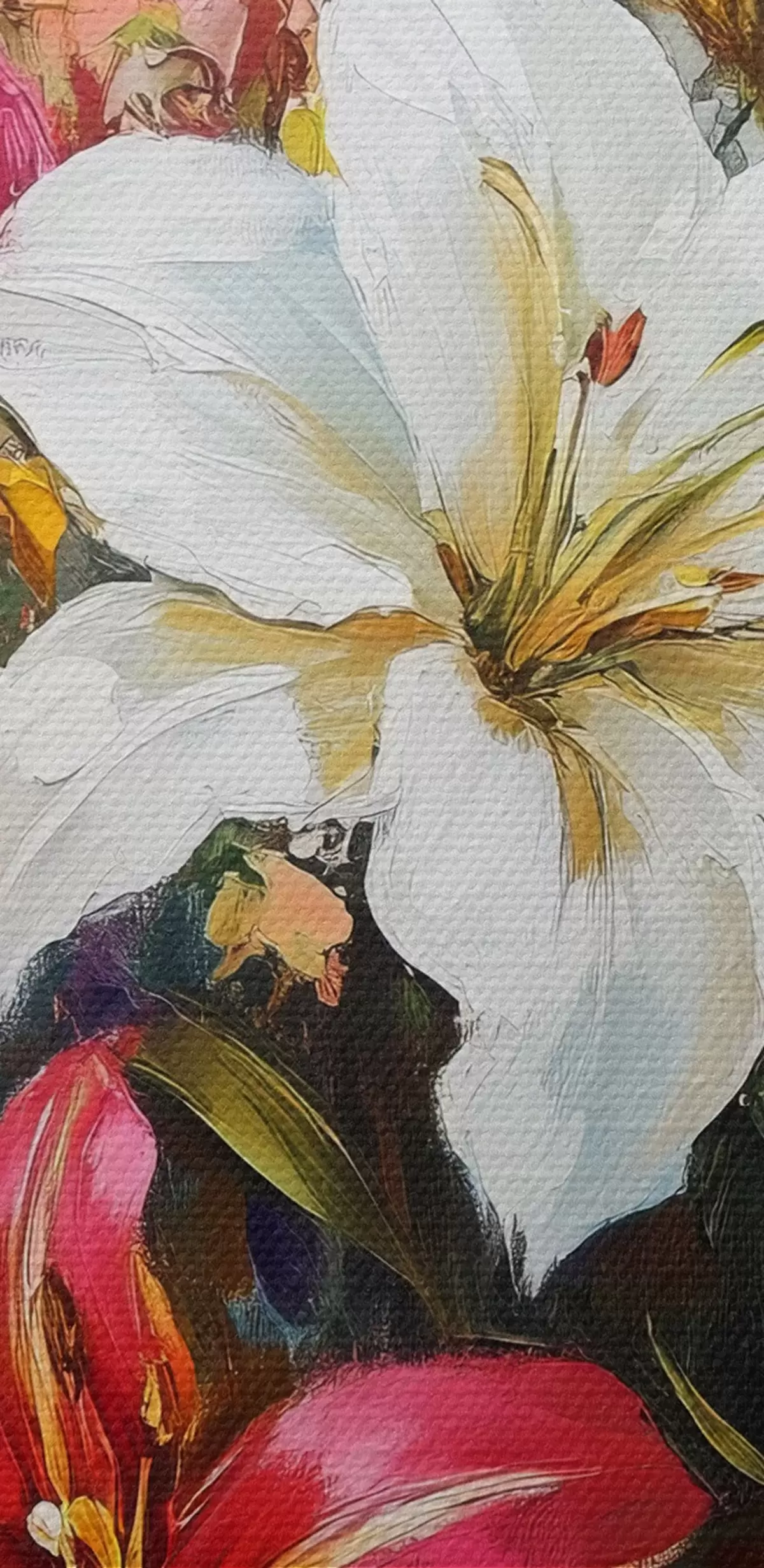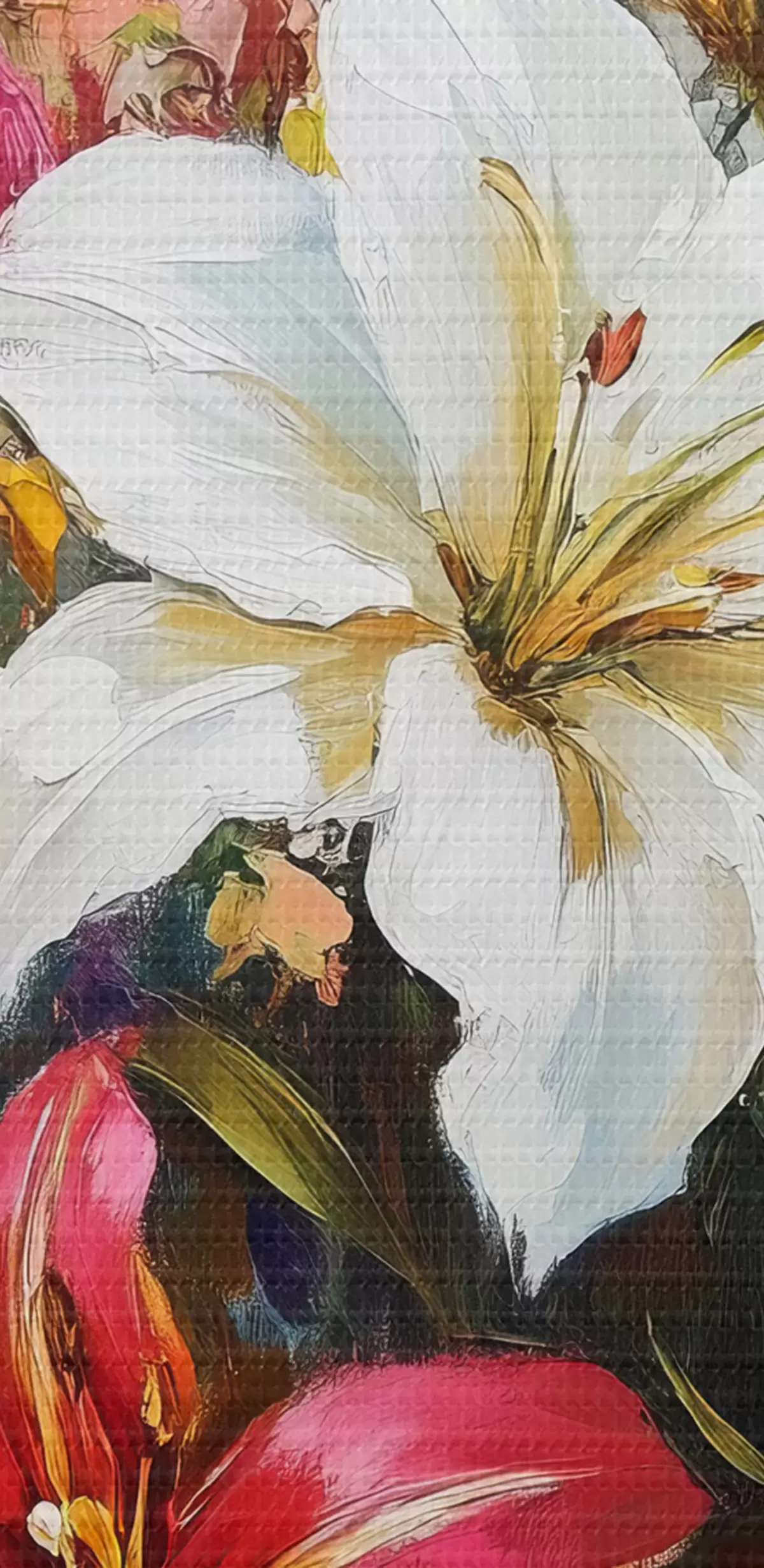 Hay tres tipos de material disponibles para pedidos: Lienzo Económico - material denso y duradero para impresión digital, idéntico al lienzo de pintor, superficie impermeable, reproducción realista de los detalles, material de grano medio. Lienzo Premium - la textura se asemeja a la de un lienzo de pintor (pequeños hilos entrelazados). Reproducción suave y detallada de la imagen sobre una superficie mate. Eco-Premium - tejido 100% algodón de alta calidad. Gracias a las fibras naturales de algodón, el material es duradero y resistente al desgaste. Excelente reproducción del color y el detalle.