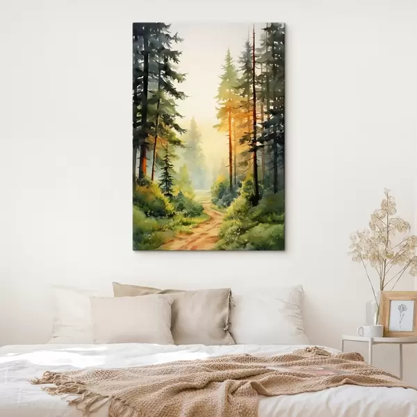 Cuadros Precioso bosque en acuarela con pinos y suave luz solar Nr s41637