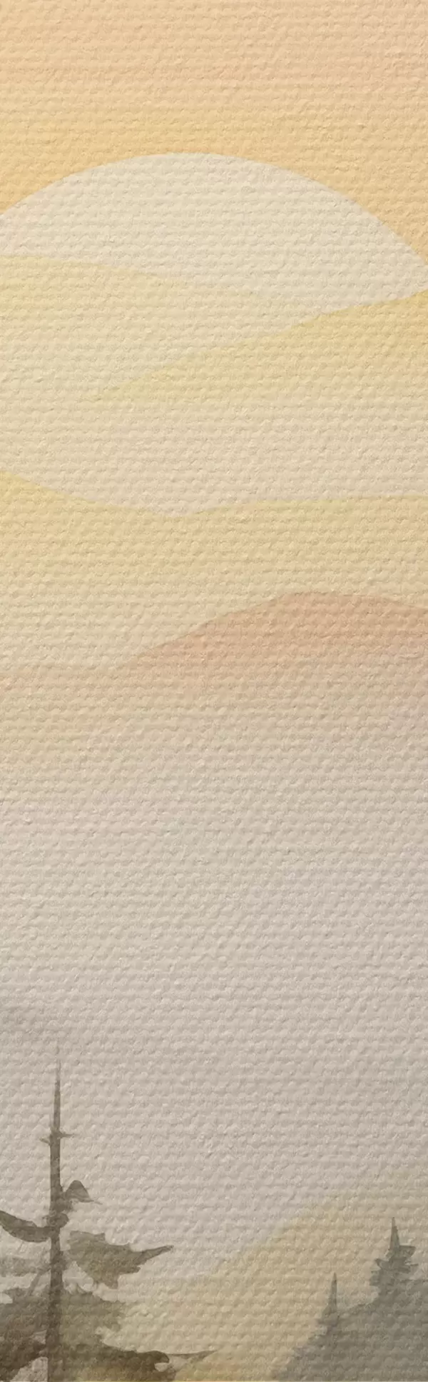 Cuadros Paisaje otoñal de montaña, bosque de pinos, puesta de sol, acuarela Nr s41645