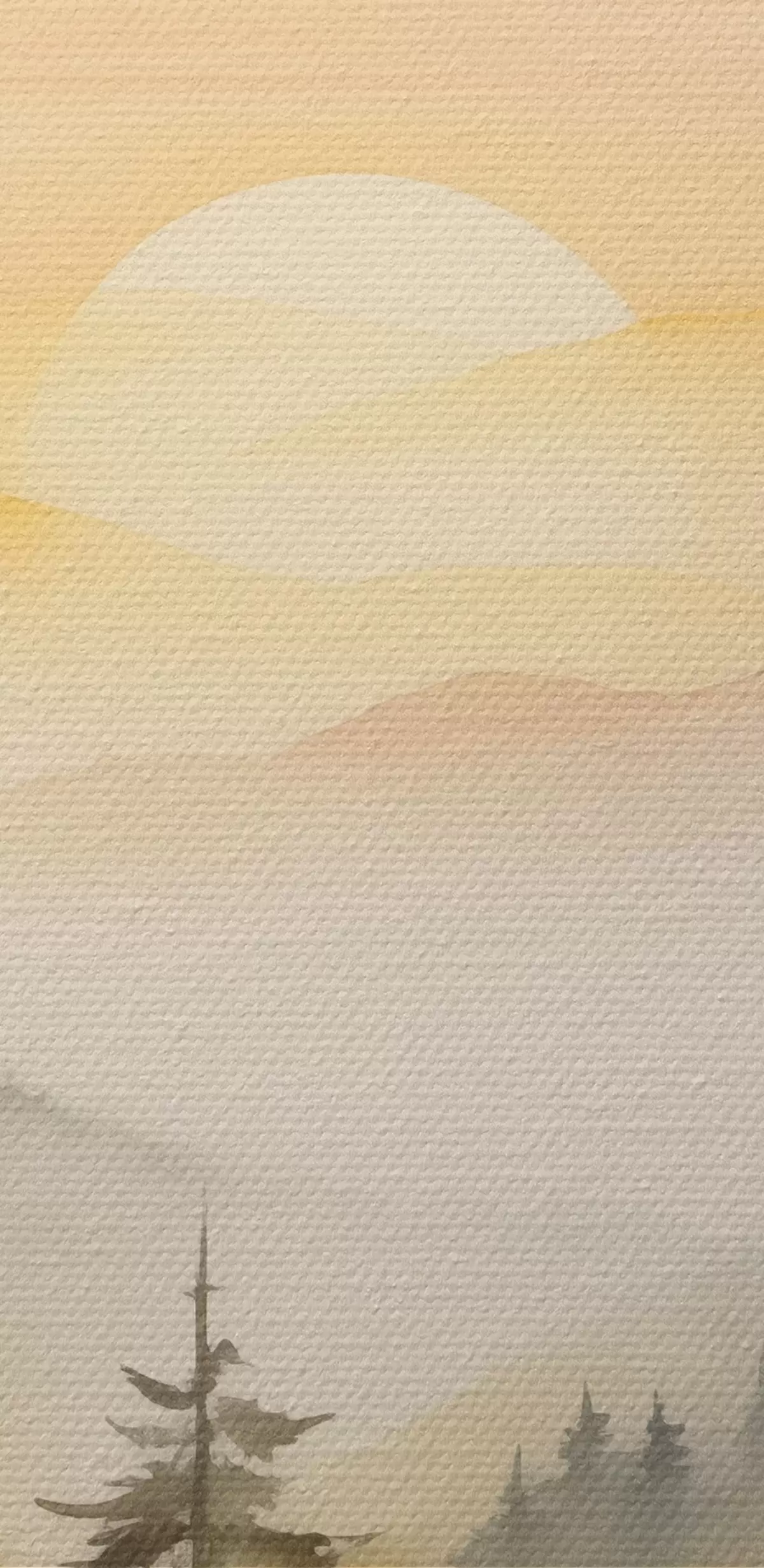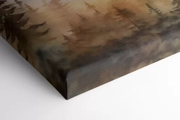 Cuadros Paisaje otoñal de montaña, bosque de pinos, puesta de sol, acuarela Nr s41645