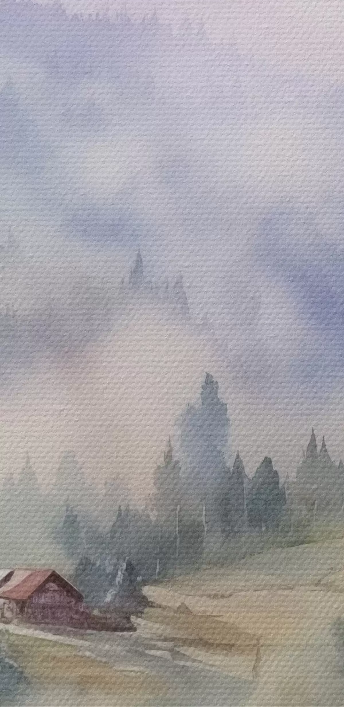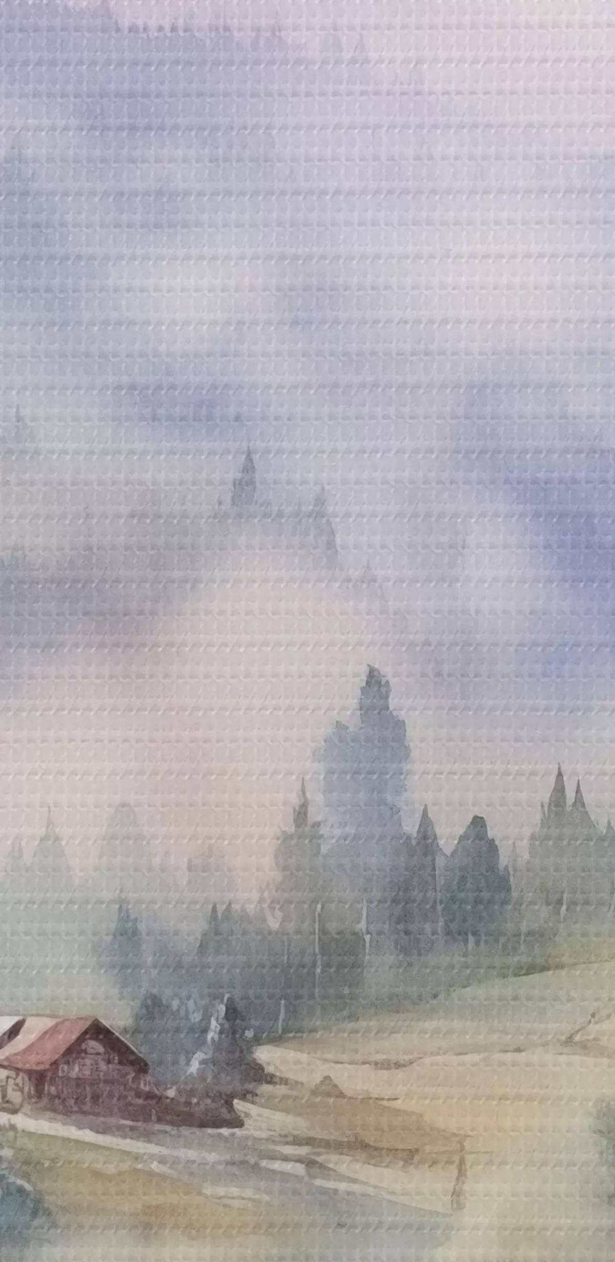 Cuadros Hermosas montañas, paisajes de bosques brumosos, acuarela, pueblo Nr s41649