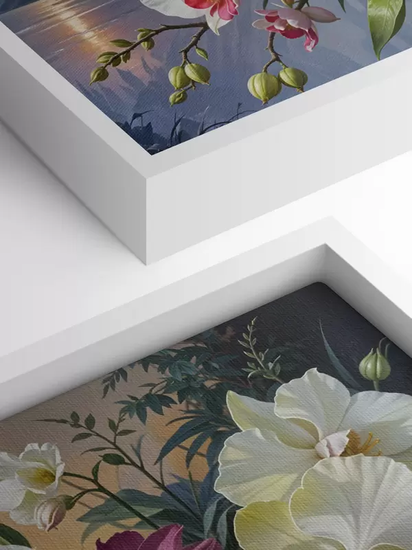 Hay tres tipos de material disponibles para pedidos: Lienzo Económico - material denso y duradero para impresión digital, idéntico al lienzo de pintor, superficie impermeable, reproducción realista de los detalles, material de grano medio. Lienzo Premium - la textura se asemeja a la de un lienzo de pintor (pequeños hilos entrelazados). Reproducción suave y detallada de la imagen sobre una superficie mate. Eco-Premium - tejido 100% algodón de alta calidad. Gracias a las fibras naturales de algodón, el material es duradero y resistente al desgaste. Excelente reproducción del color y el detalle.