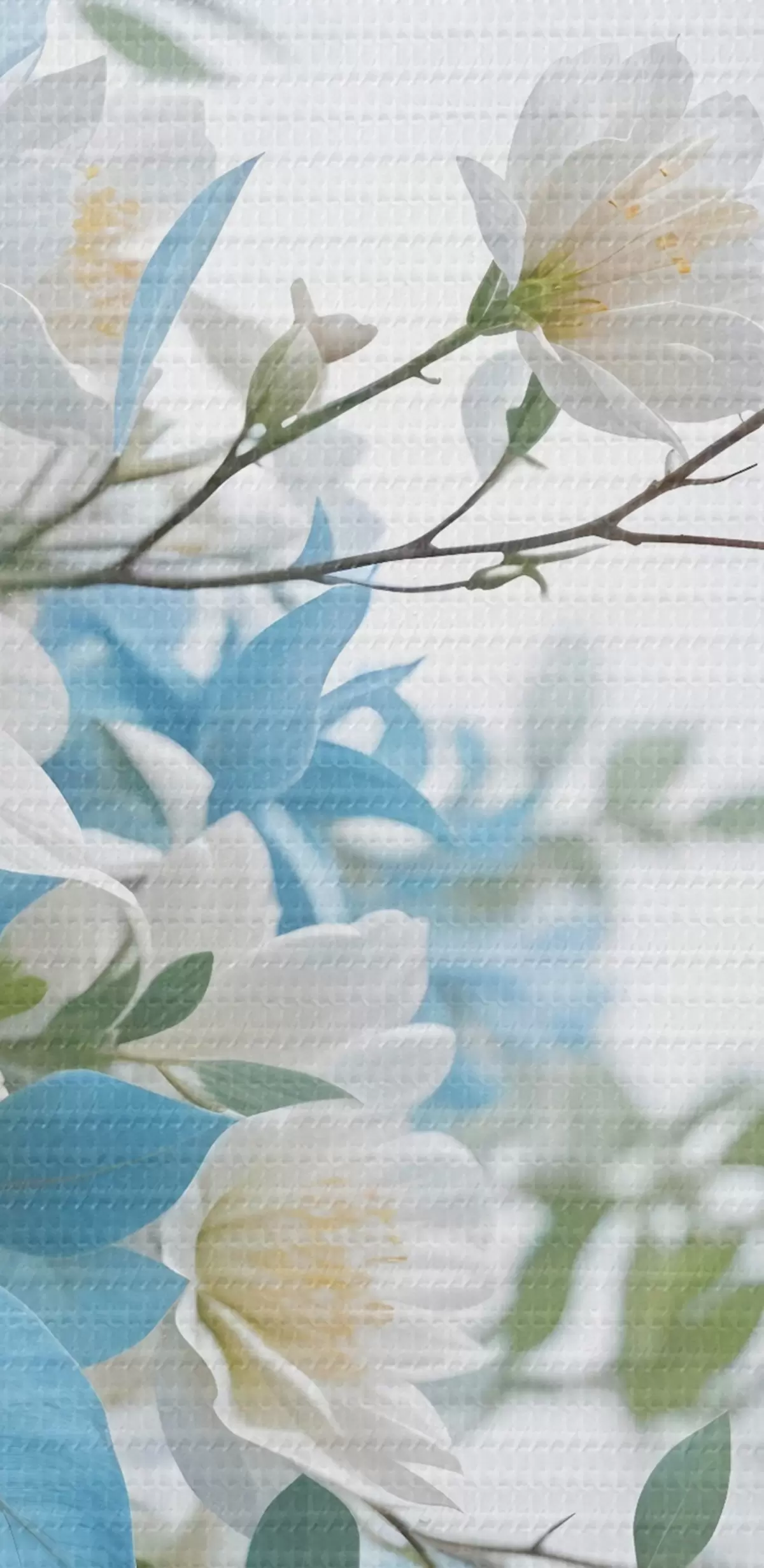 murales de pared Un ramo de flores blancas y azules con hojas verdes sobre un fondo suave y difuminado s41715