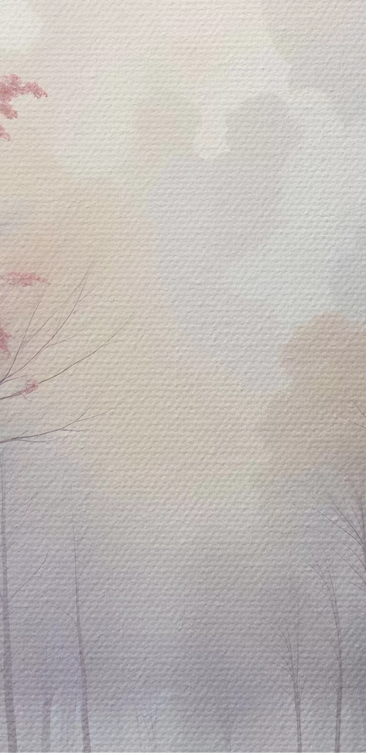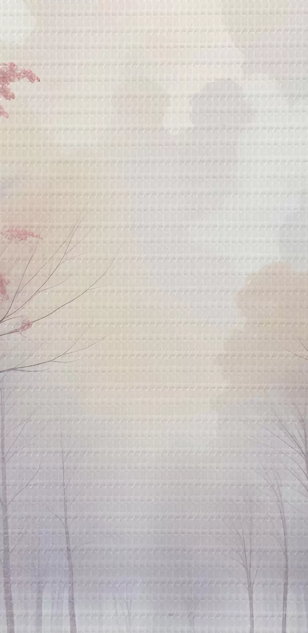 murales de pared Un paisaje sereno con un bosque brumoso, árboles desnudos y un lago tranquilo que refleja los suaves tonos rosas y blancos  s41720