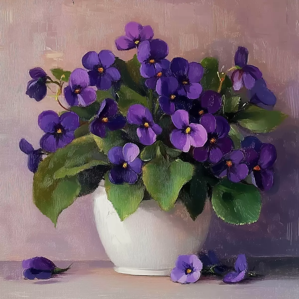Cuadros Violetas moradas en una maceta blanca Nr s41823