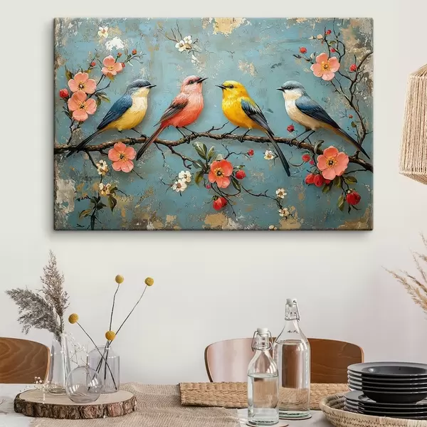 murales de pared Pájaros en una rama de sakura al estilo de la pintura al óleo s41834