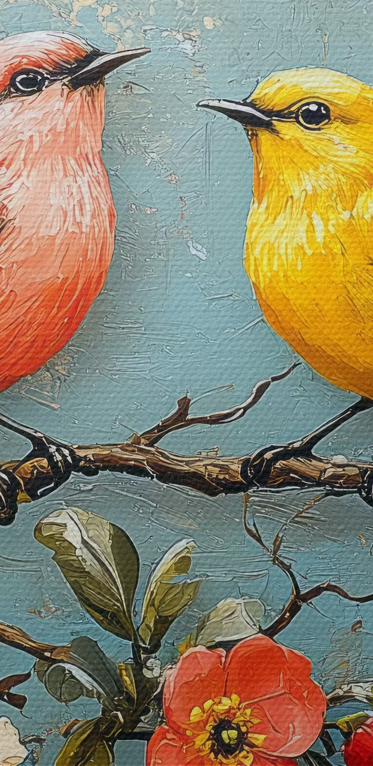 murales de pared Pájaros en una rama de sakura al estilo de la pintura al óleo s41834