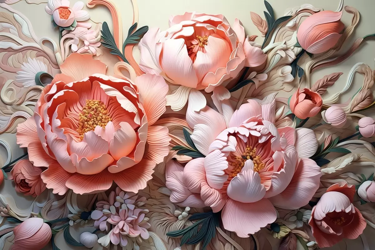 murales de pared Exuberantes peonías en tonos rosados s41859