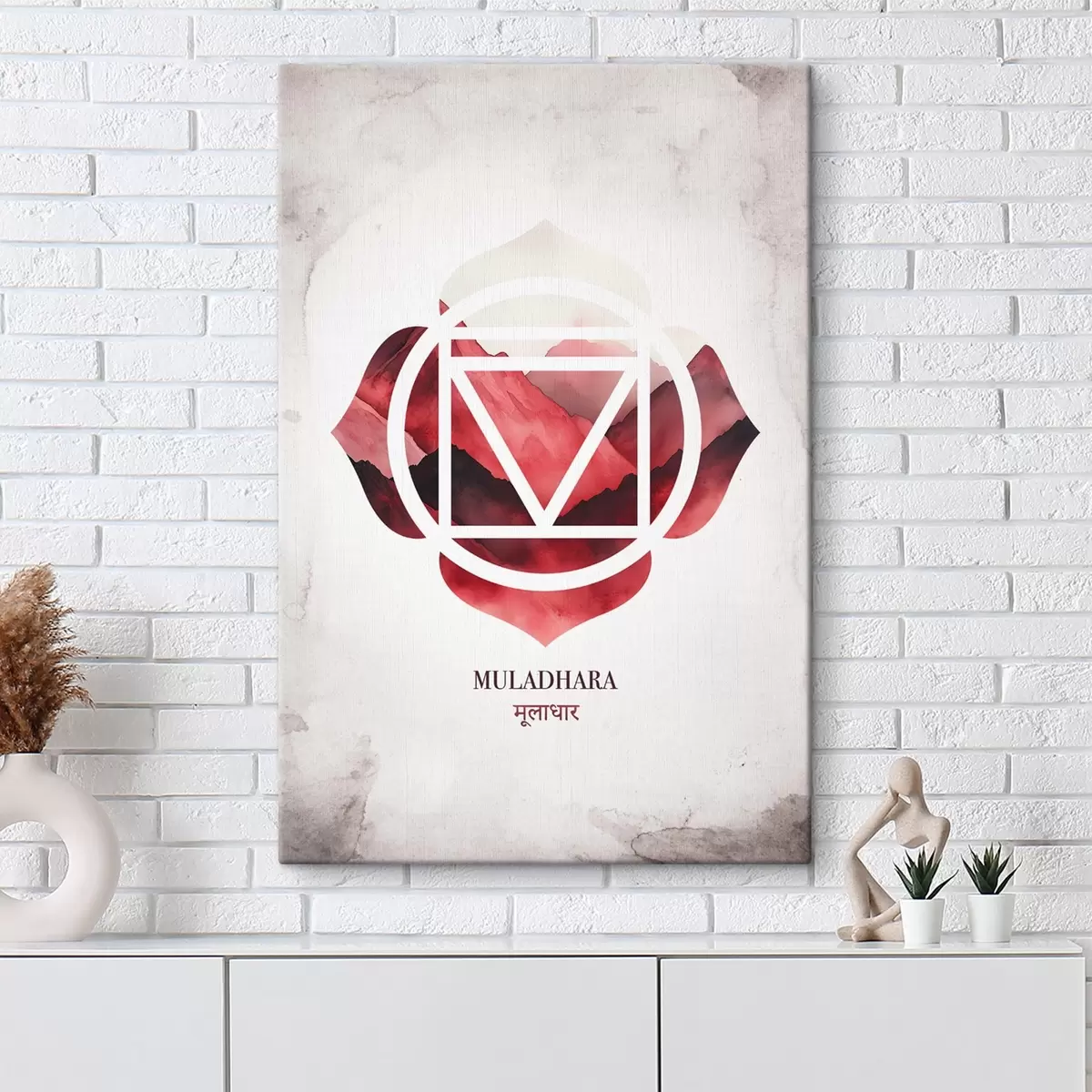Cuadros Muladhara chakra, chakra rojo, esotérico, meditación, budismo, montañas estilo acuarela Nr s41880