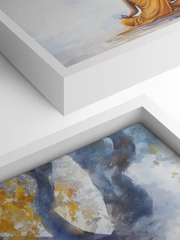 Cuadros Meditación bajo el árbol, Buda, estilo acuarela, colores amarillo y azul Nr s41888