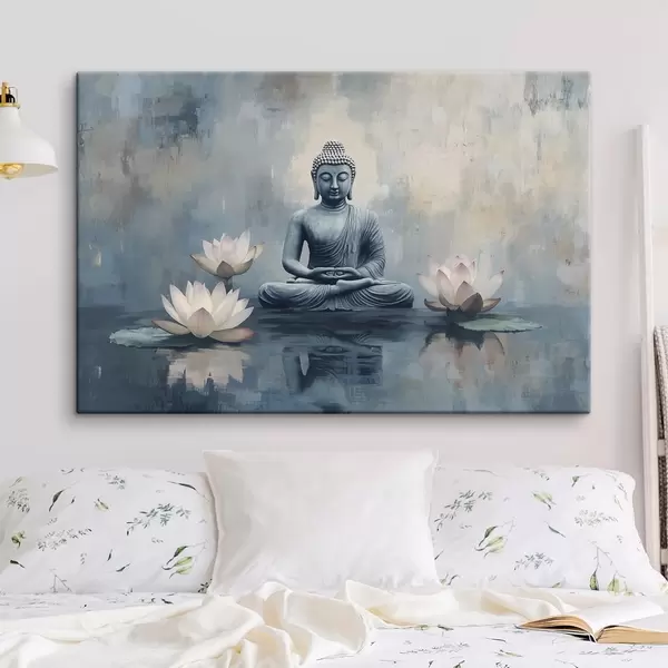 Cuadros Buda meditando en el lago con lotos, estilo oriental, acrílico Nr s41891