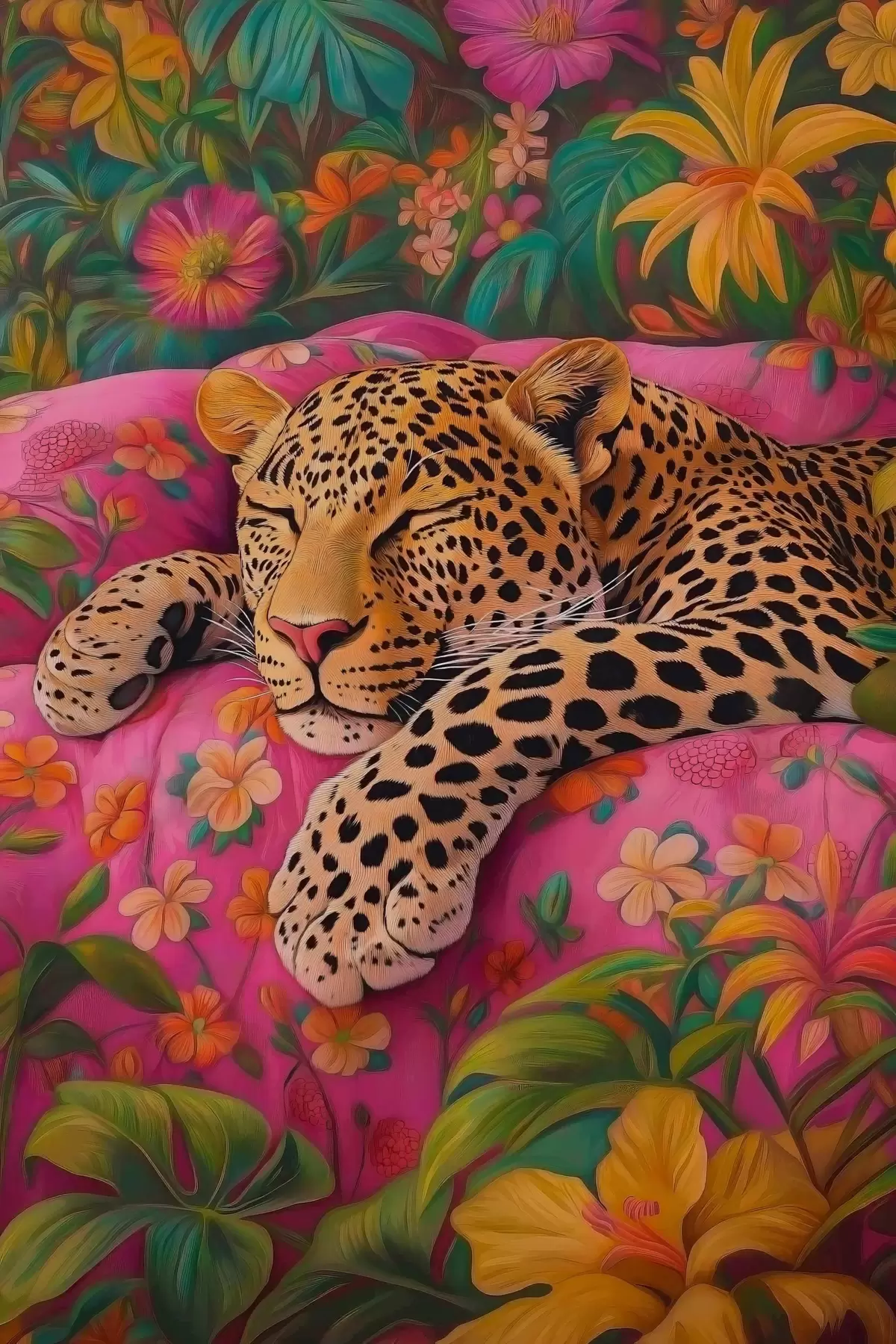 Cuadros Leopardo dormido entre las flores Nr s41929