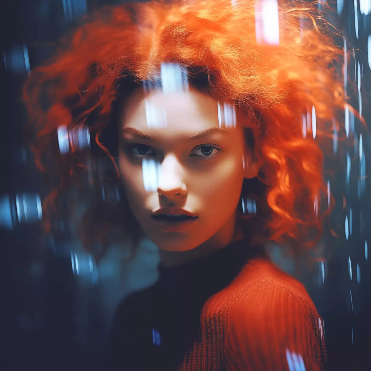 Cuadros Chica pelirroja sobre fondo azul oscuro Nr s41934
