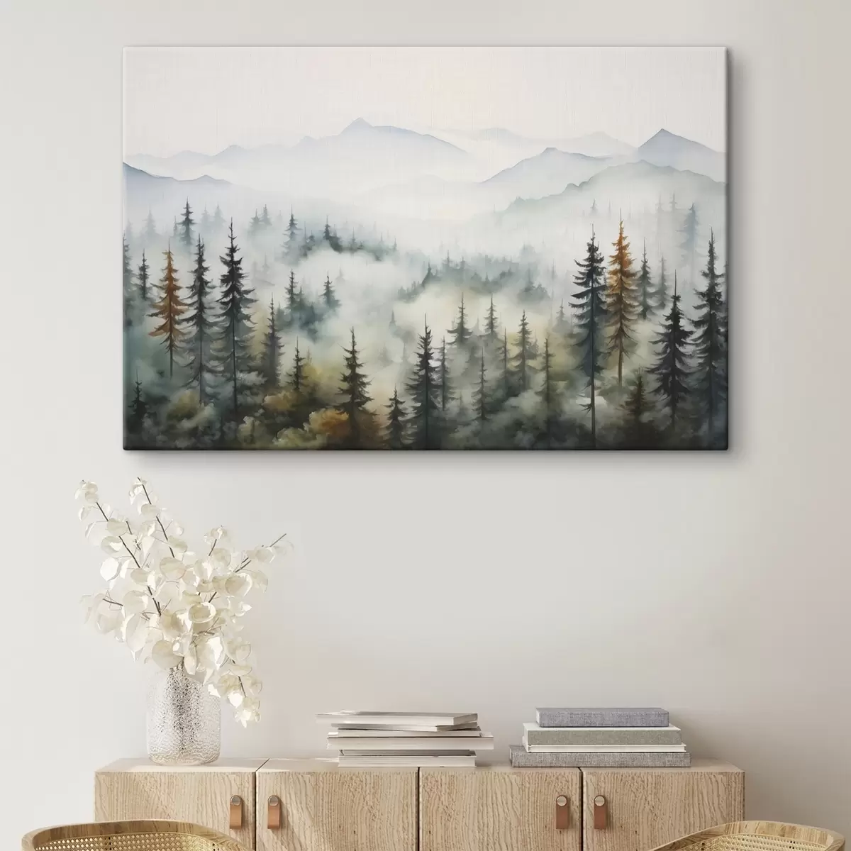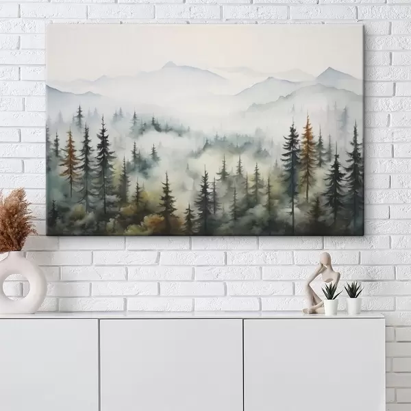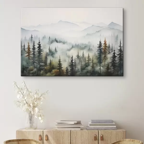 Cuadros Bosque sobre el fondo de las montañas en la niebla imitación de acuarela Nr s41935