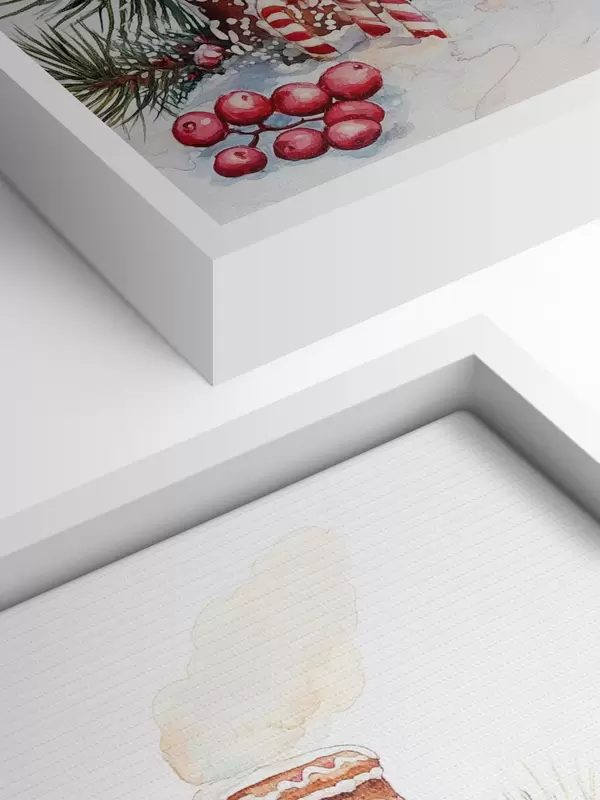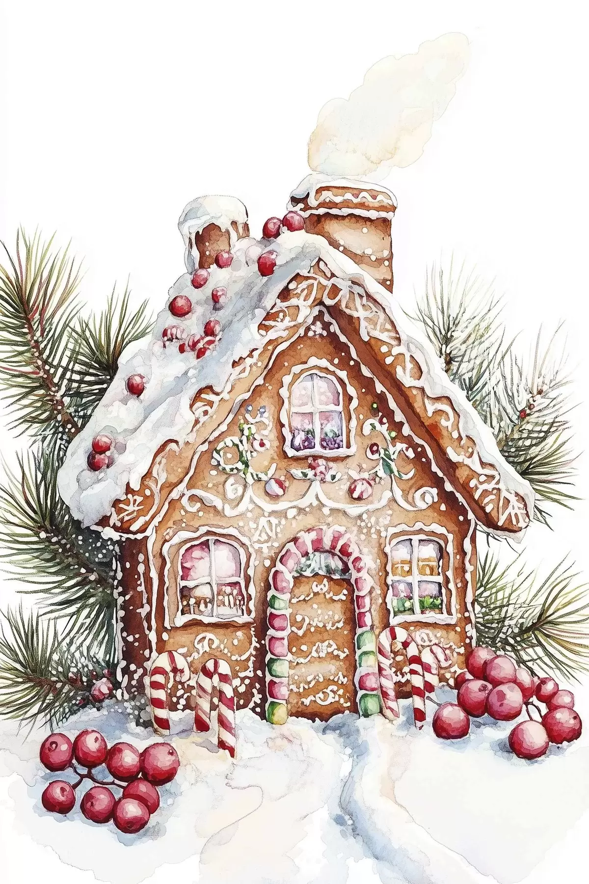 murales de pared Casa de pan de jengibre, ramas de pino, bayas rojas, Navidad  s41946