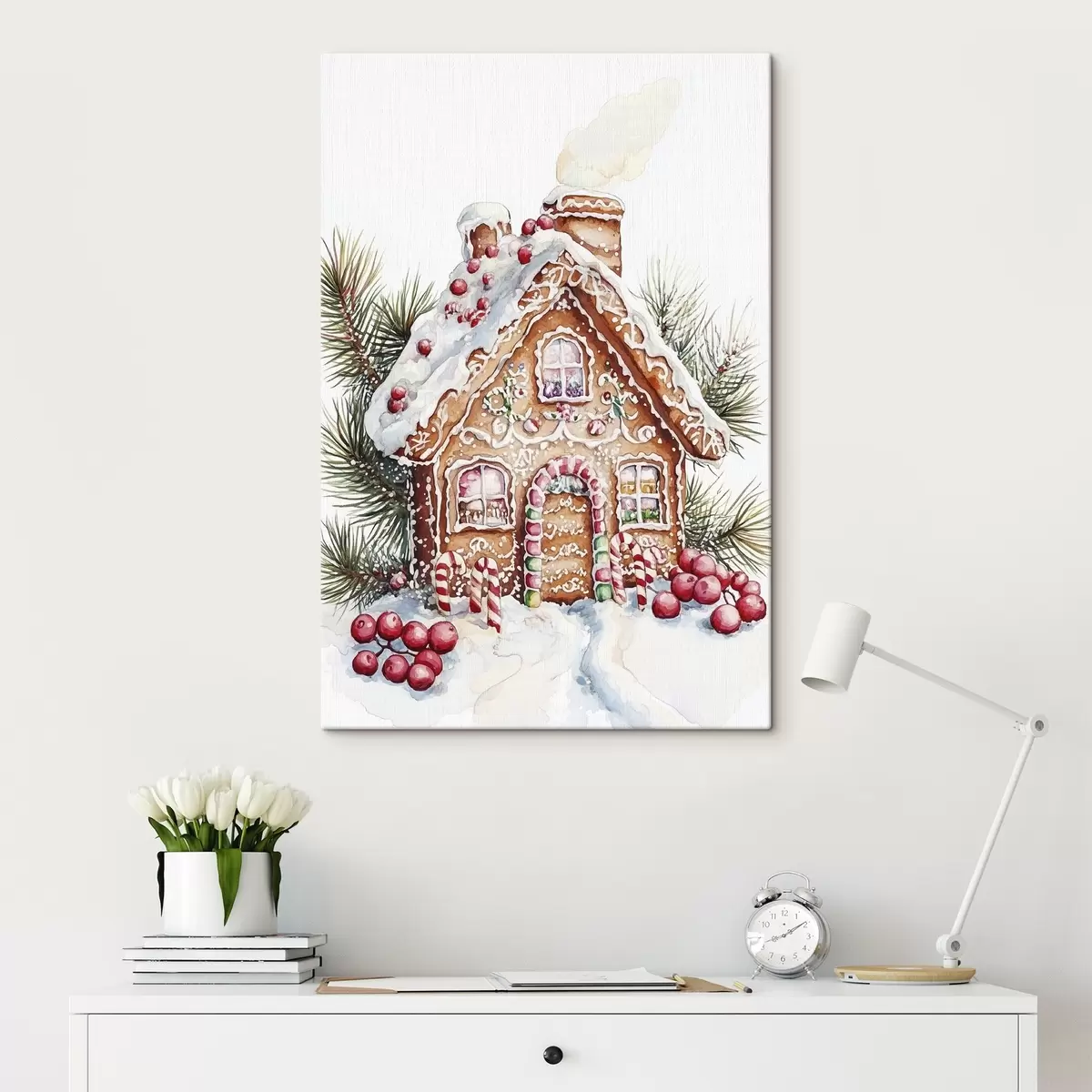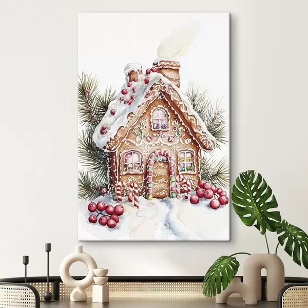 Cuadros Casa de pan de jengibre, ramas de pino, bayas rojas, Navidad Nr s41946