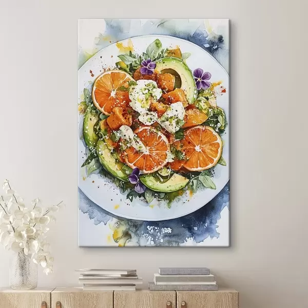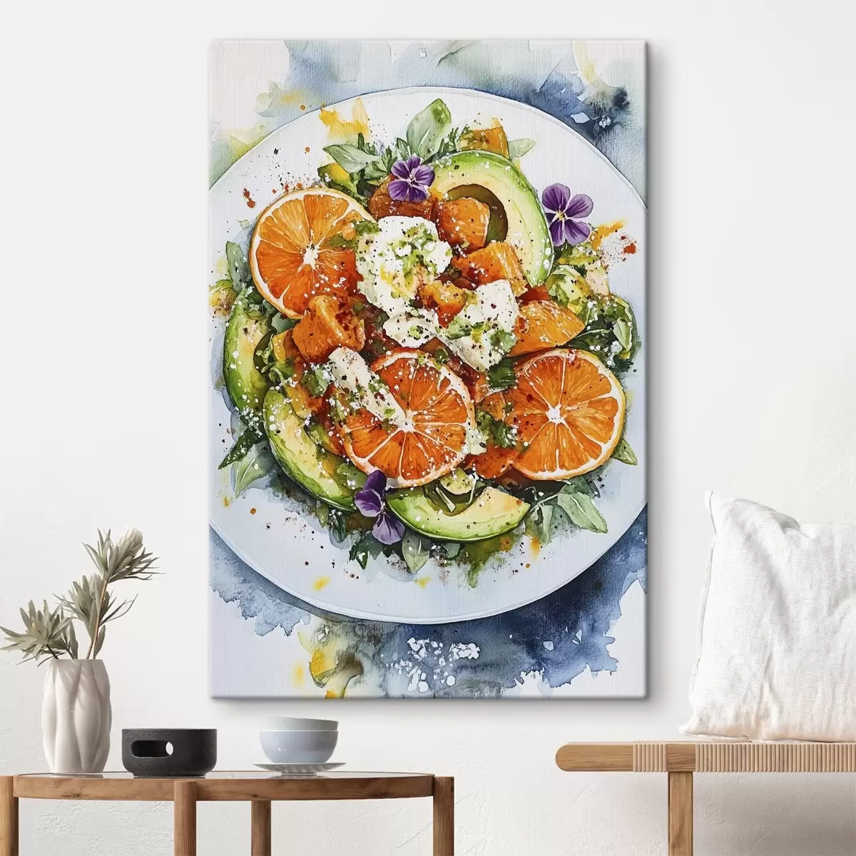 Cuadros Deliciosa ensalada con naranjas, queso feta, calabazas y aguacate, comida de acuarela Nr s41959