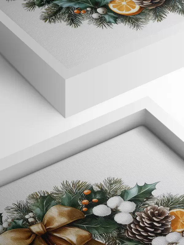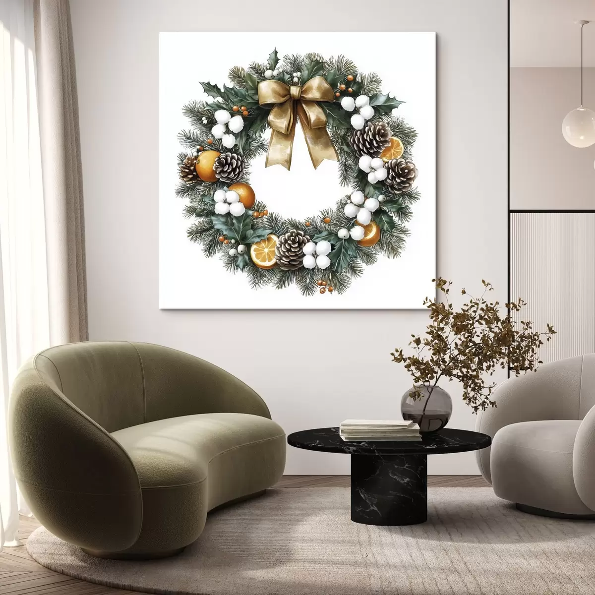 Cuadros Corona navideña de pino con lazo, algodón, naranjas, bayas y piñas Nr s41962