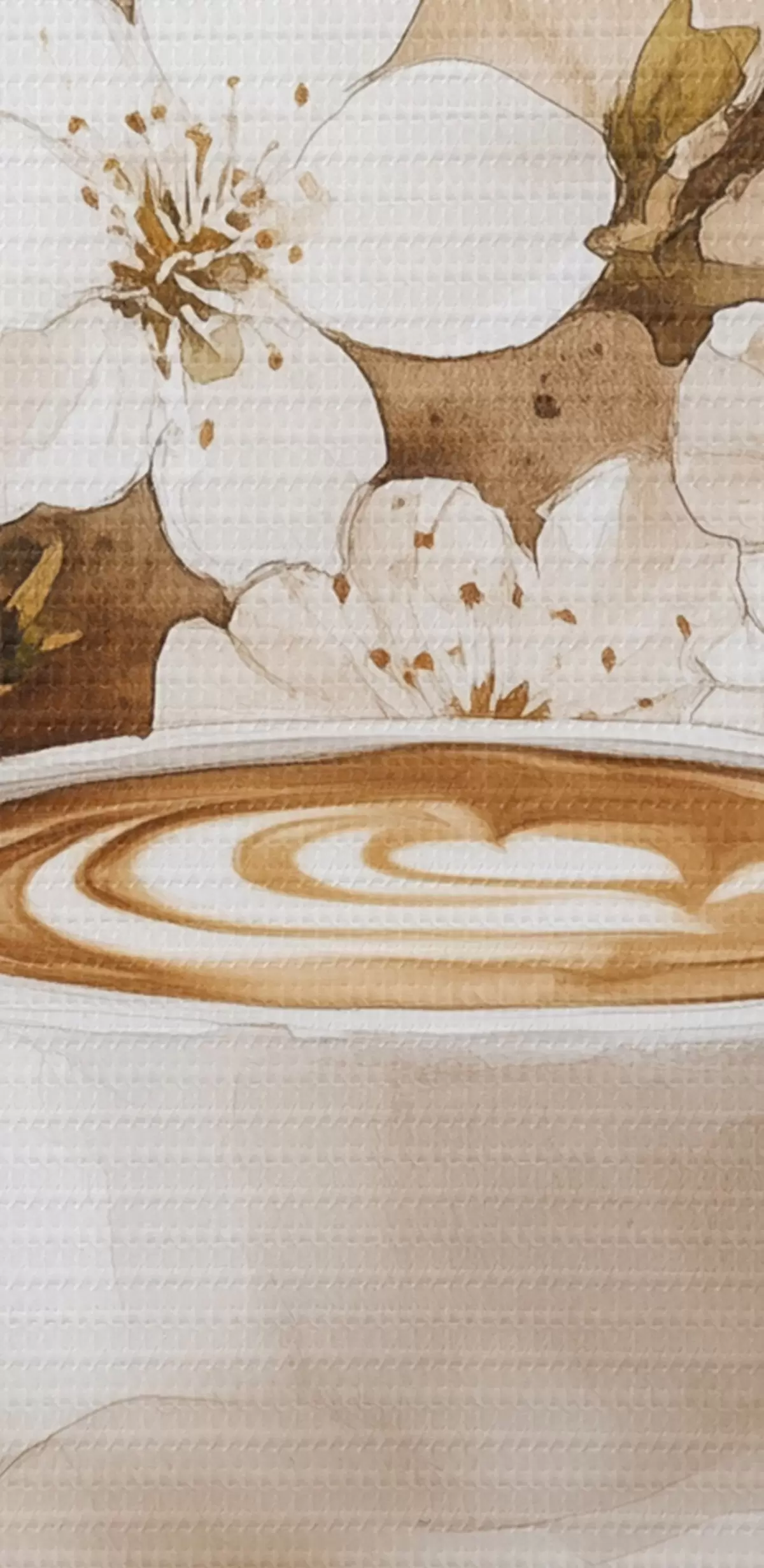 murales de pared Macarrones, taza de café, estilo acuarela, colores beige, flores de jazmín s41965