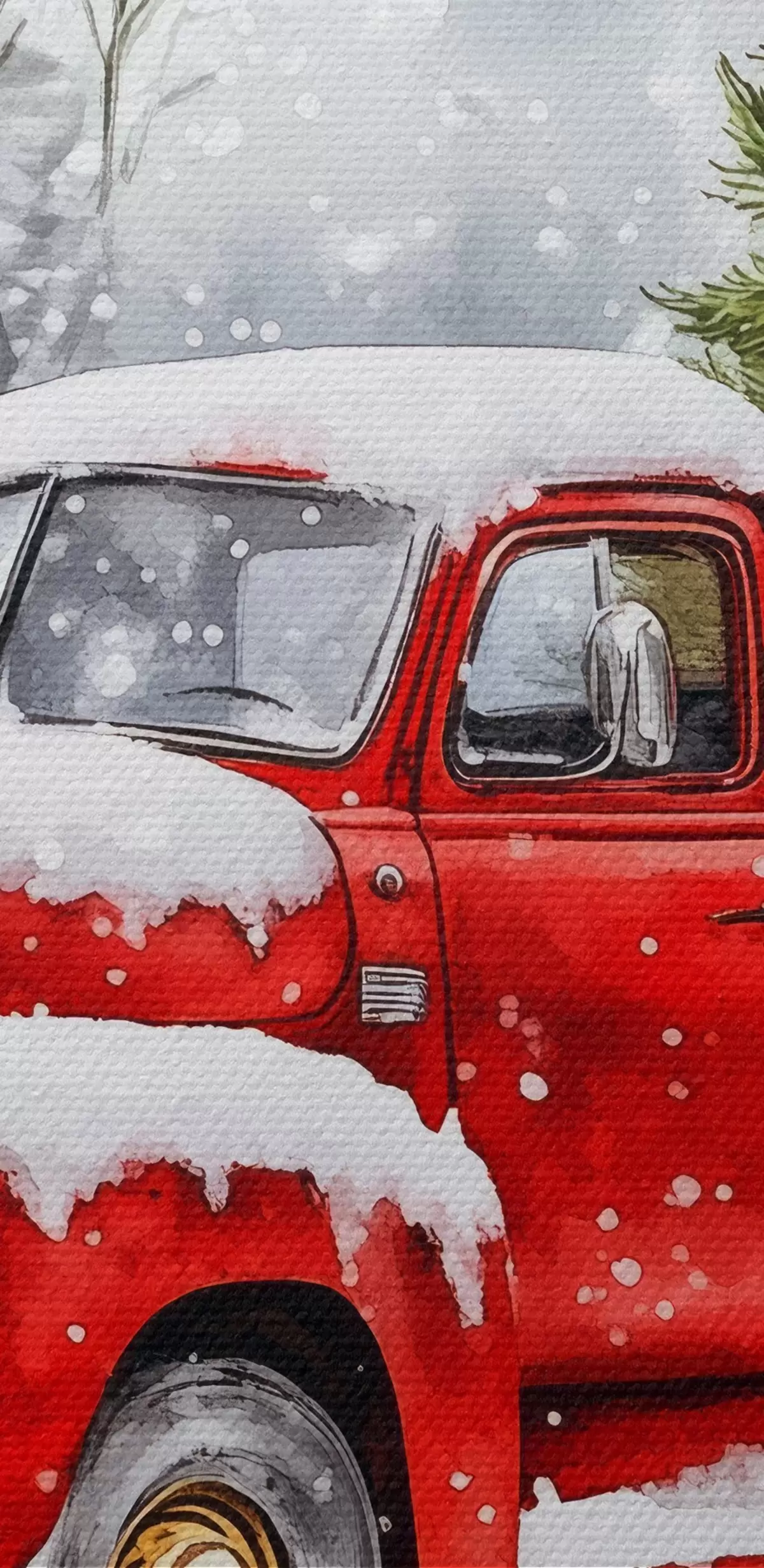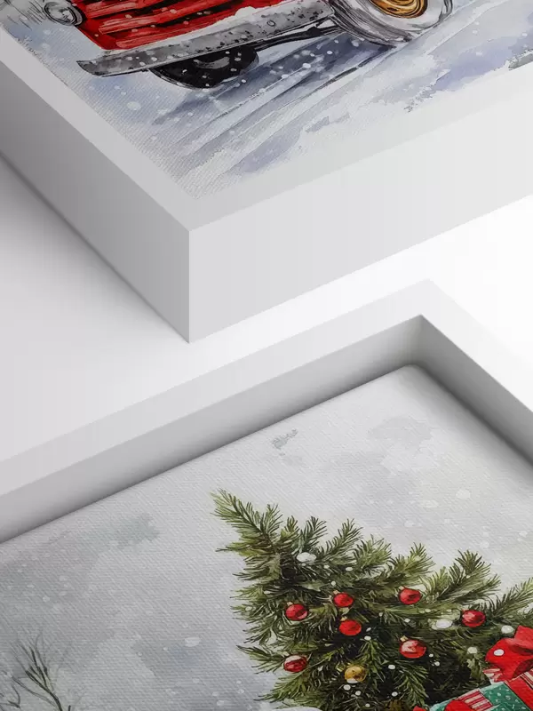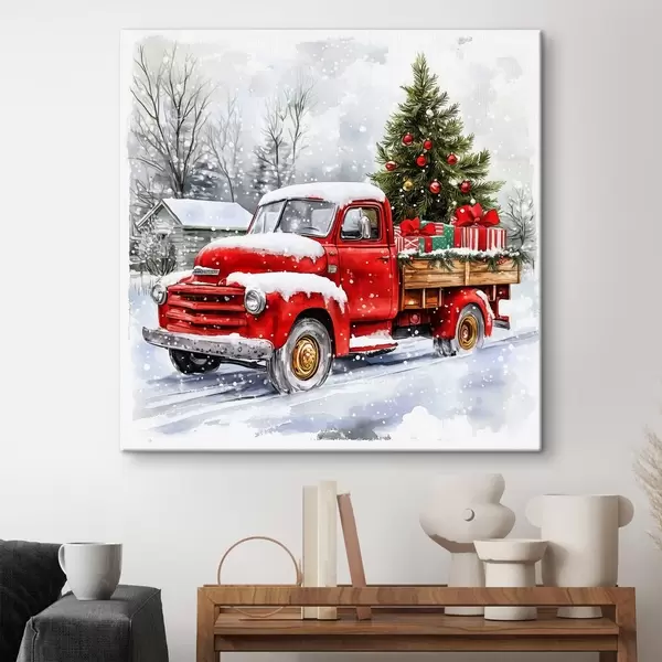 Cuadros Un coche de Navidad con un árbol y regalos en tiempo de nieve Nr s41968