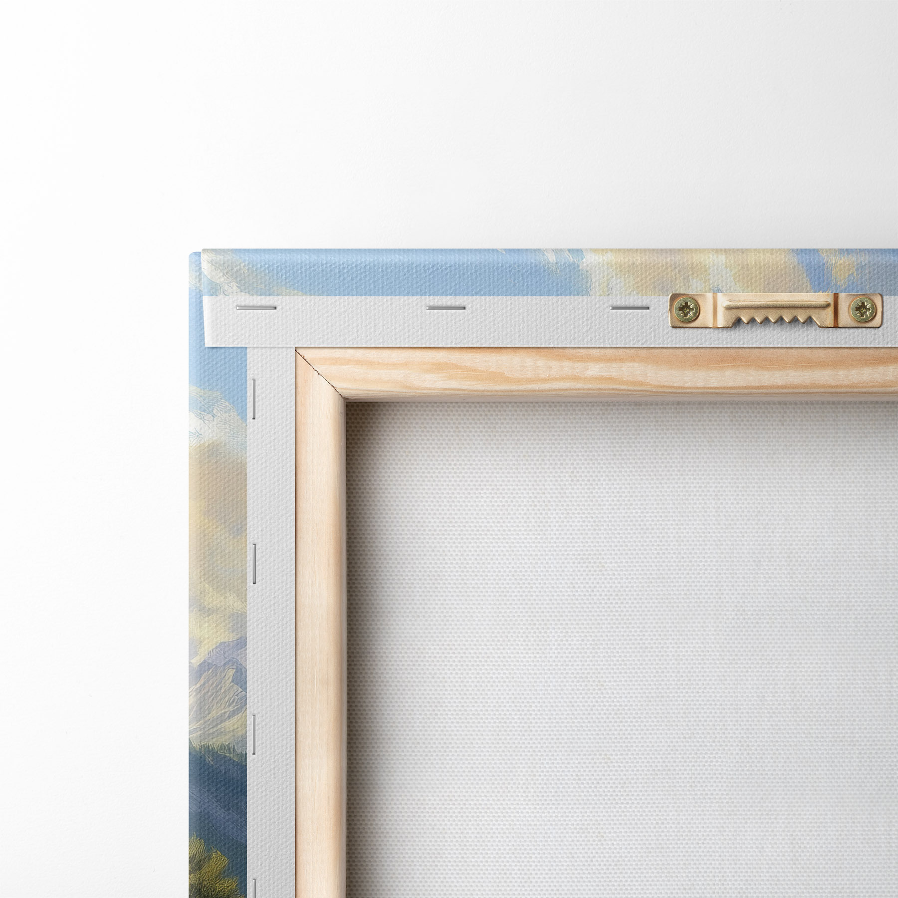 Vendemos cuadros en bastidor: se trata de un marco de madera sobre el que se extiende el lienzo. Este cuadro no necesita marco; puedes colgarlo directamente en la pared.