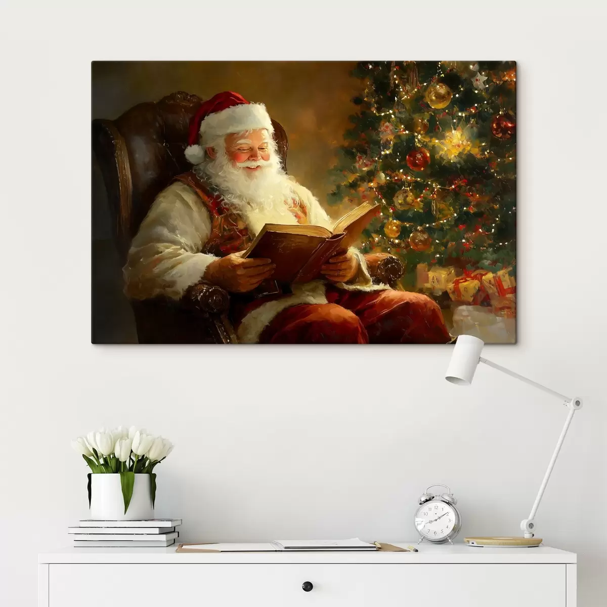 Cuadros Papá Noel está leyendo un libro cerca del árbol de Navidad Nr s42100