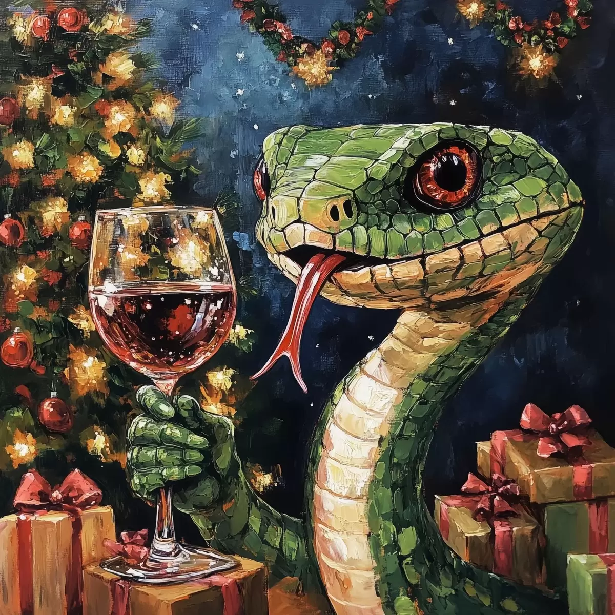 Cuadros Una serpiente con un vaso de vino celebra el año nuevo Nr s42106