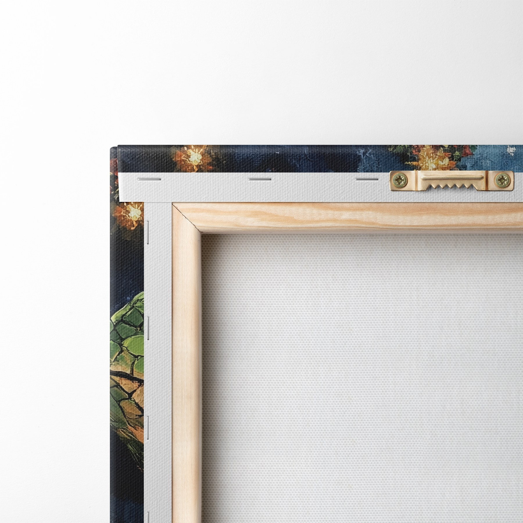 Vendemos cuadros en bastidor: se trata de un marco de madera sobre el que se extiende el lienzo. Este cuadro no necesita marco; puedes colgarlo directamente en la pared.