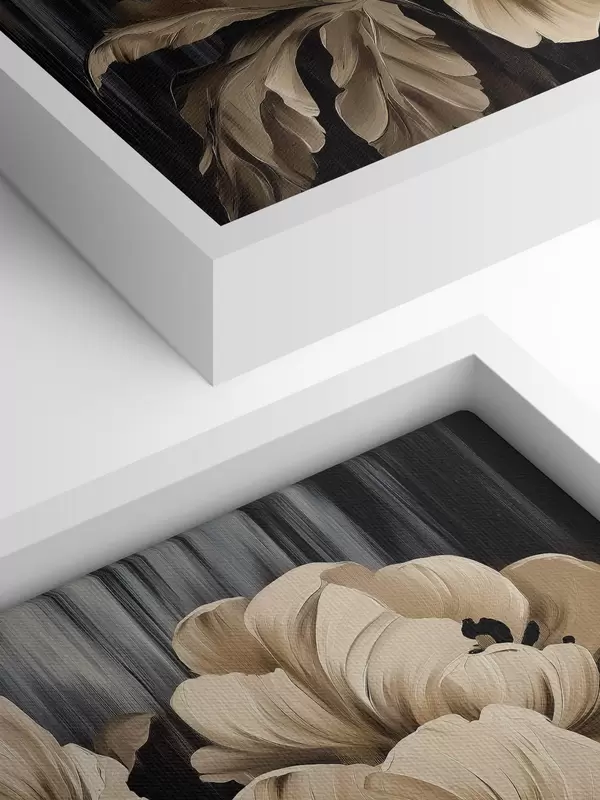 Hay tres tipos de material disponibles para pedidos: Lienzo Económico - material denso y duradero para impresión digital, idéntico al lienzo de pintor, superficie impermeable, reproducción realista de los detalles, material de grano medio. Lienzo Premium - la textura se asemeja a la de un lienzo de pintor (pequeños hilos entrelazados). Reproducción suave y detallada de la imagen sobre una superficie mate. Eco-Premium - tejido 100% algodón de alta calidad. Gracias a las fibras naturales de algodón, el material es duradero y resistente al desgaste. Excelente reproducción del color y el detalle.