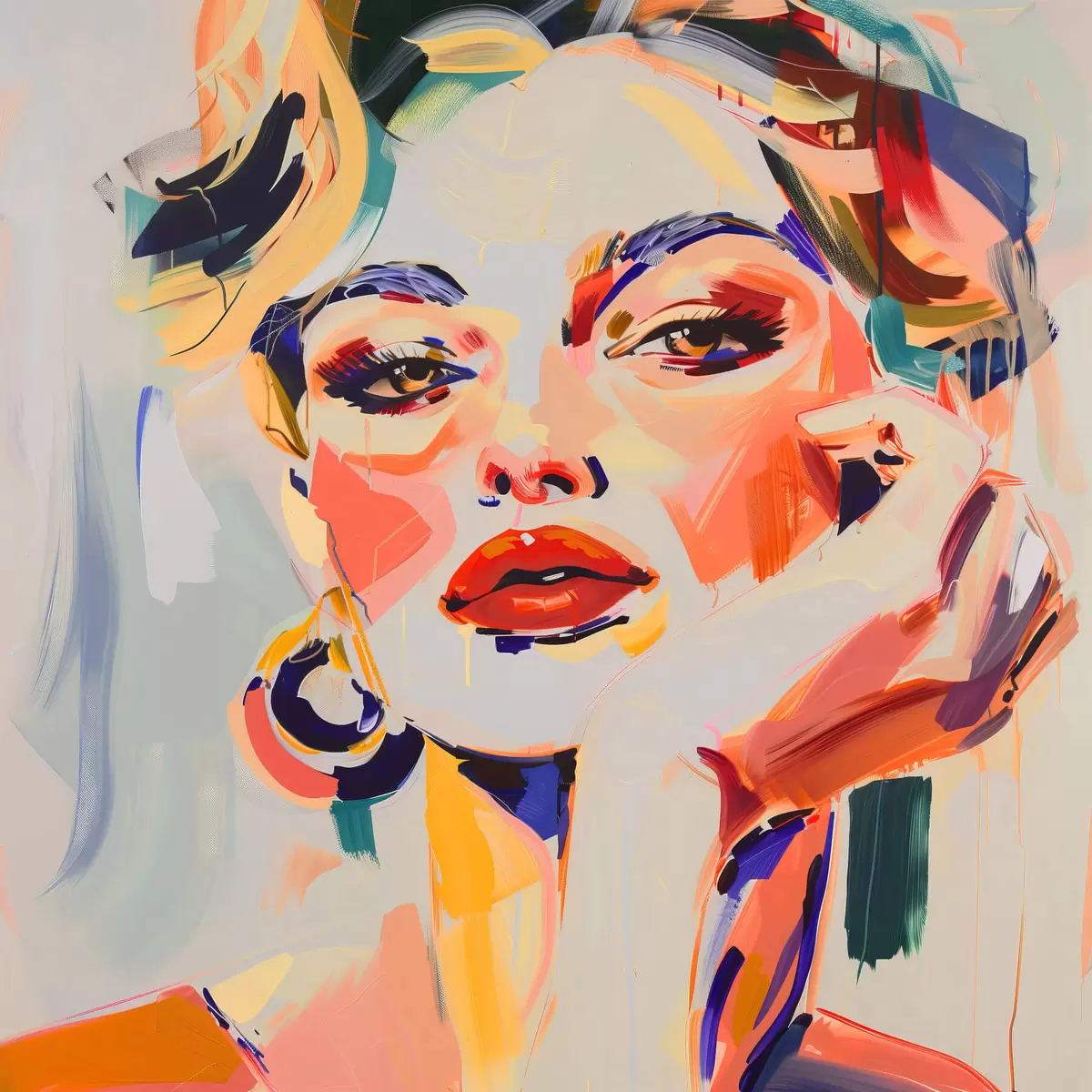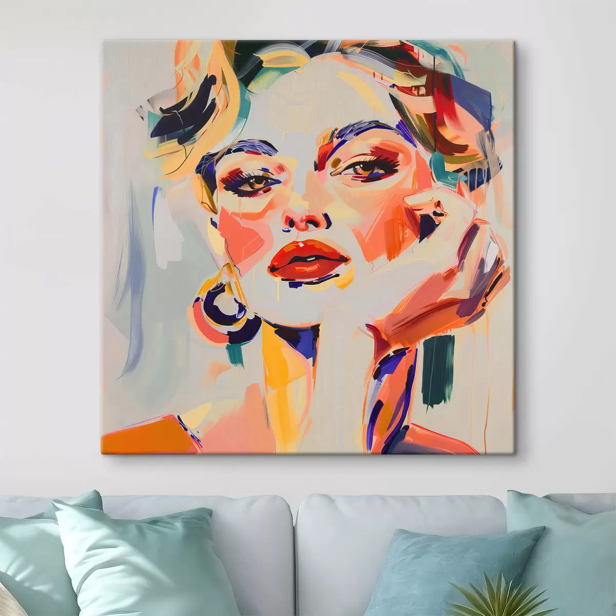Cuadros Retrato de mujer con trazos multicolores Nr s42111