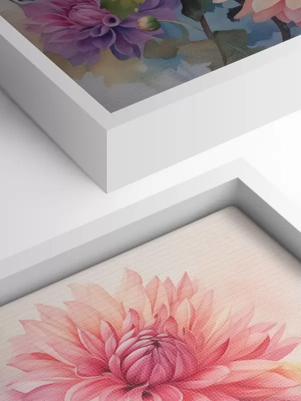 Hay tres tipos de material disponibles para pedidos: Lienzo Económico - material denso y duradero para impresión digital, idéntico al lienzo de pintor, superficie impermeable, reproducción realista de los detalles, material de grano medio. Lienzo Premium - la textura se asemeja a la de un lienzo de pintor (pequeños hilos entrelazados). Reproducción suave y detallada de la imagen sobre una superficie mate. Eco-Premium - tejido 100% algodón de alta calidad. Gracias a las fibras naturales de algodón, el material es duradero y resistente al desgaste. Excelente reproducción del color y el detalle.