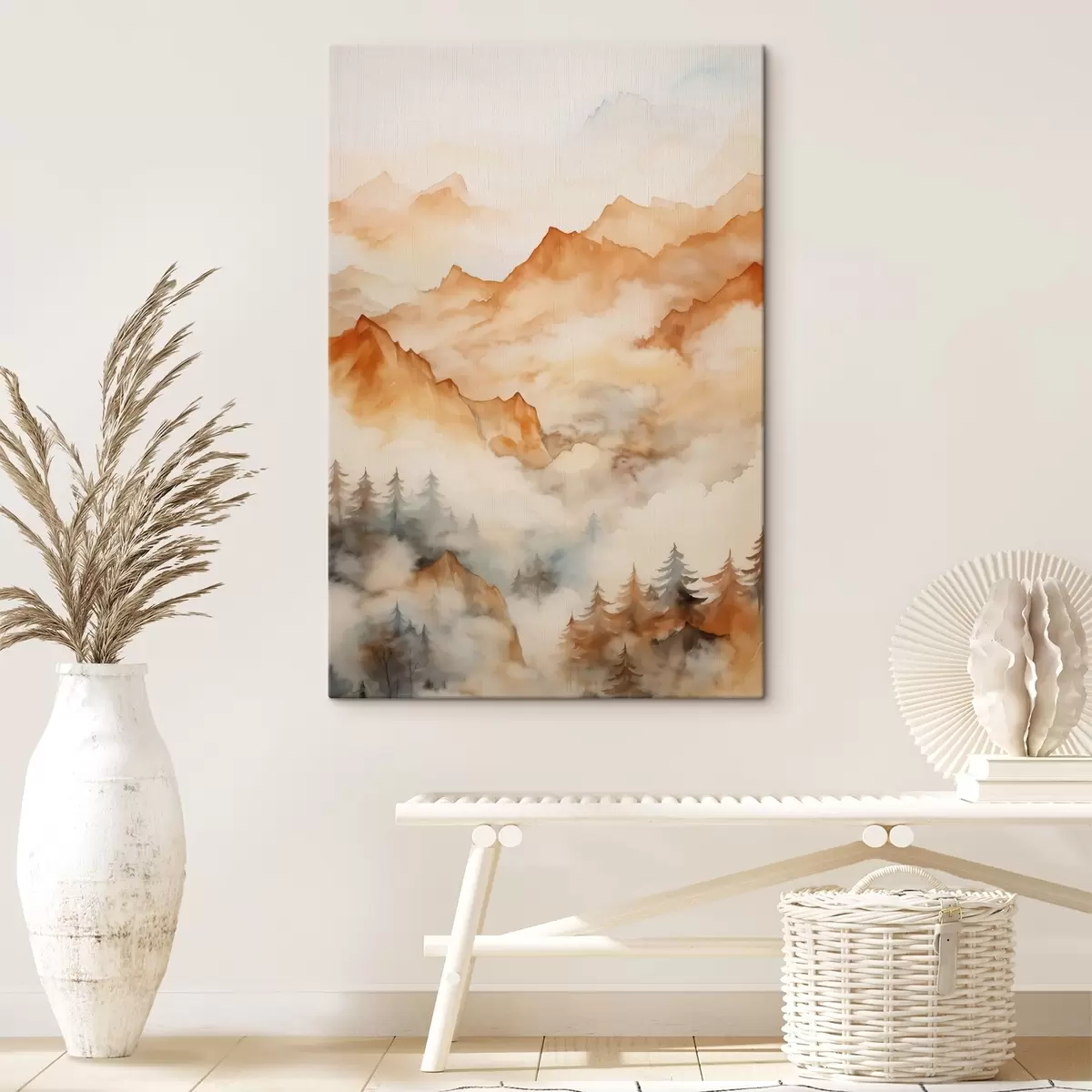 Cuadros Bosque y montañas imitación de acuarela, tonos anaranjados Nr s42119