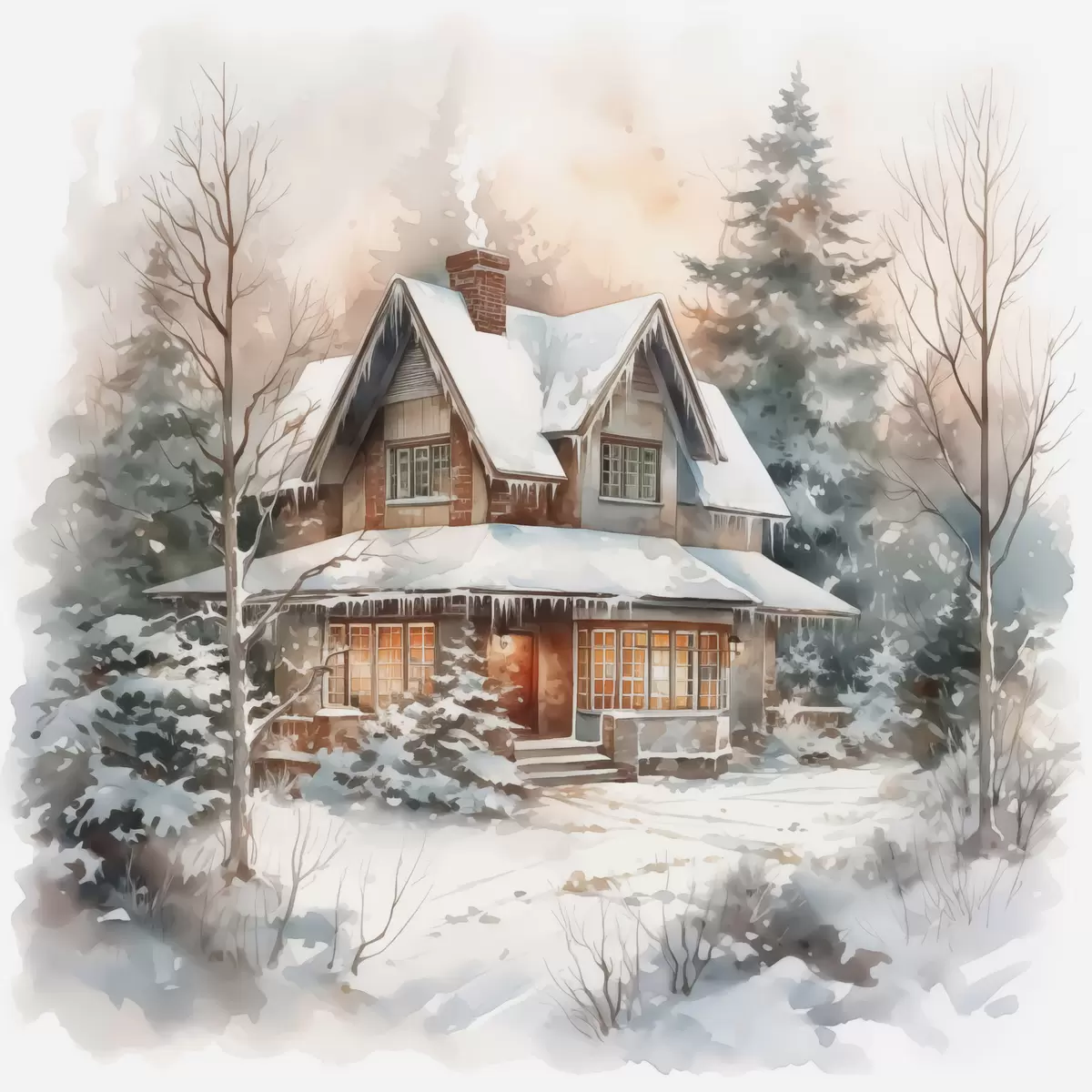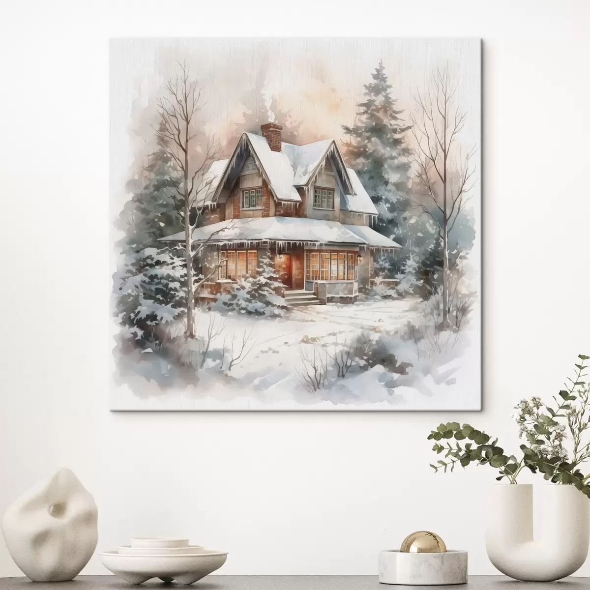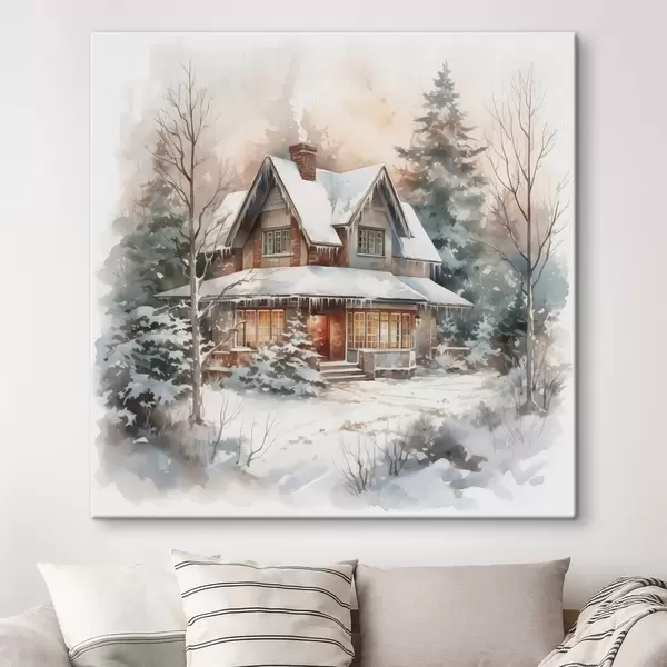 Cuadros Casa en un bosque nevado imitación acuarela Nr s42137