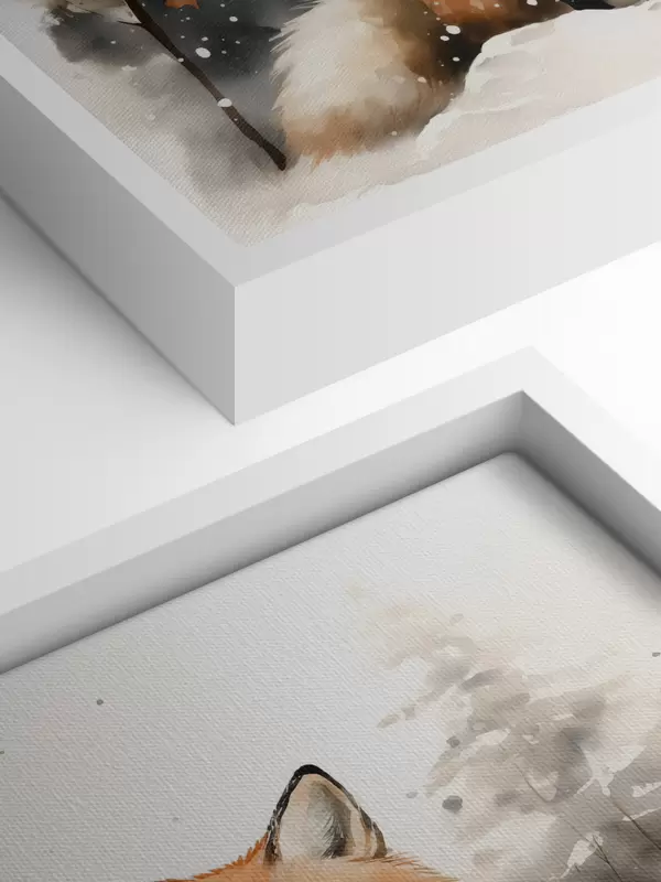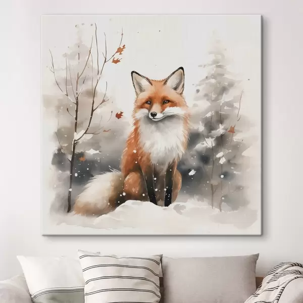 Cuadros Cachorro de zorro en un bosque nevado imitación acuarela Nr s42146