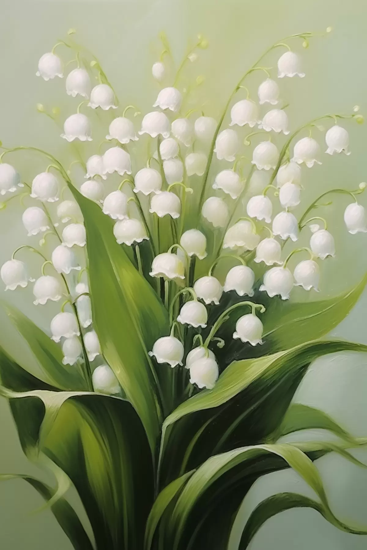 Cuadros Lirios del valle sobre un delicado fondo verde Nr s42160