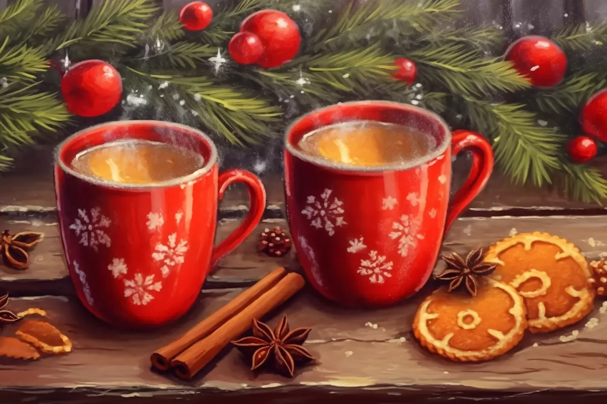 Cuadros Tazas de té entre ramas festivas Nr s42164